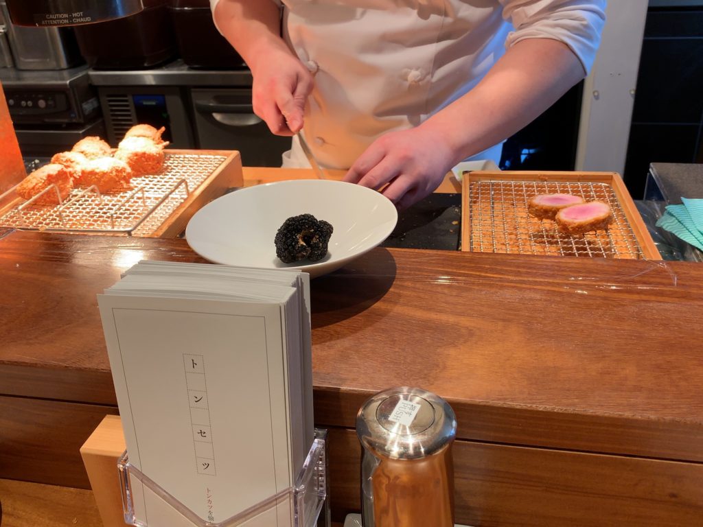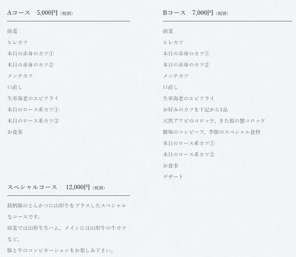 何と言ってもコース専門のとんかつ店というところでしょう。天ぷらのように揚げたてを一品ずつ出すスタイルでいろいろな部位をちょっとずつ食べるという珍しいとんかつの食べ方をすることができます。