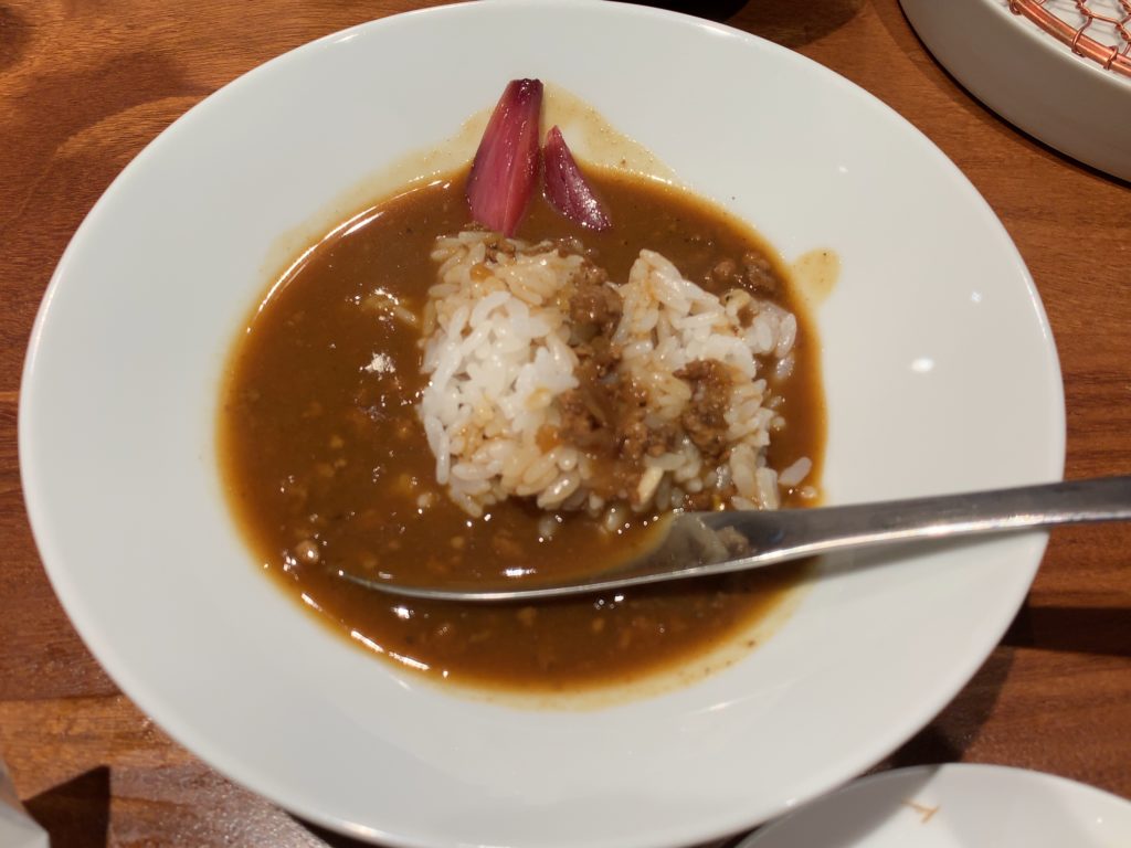 スパイシーで美味しいです。かぶりやメンチカツはカレーと一緒に食べてもよかったなぁと思いました。