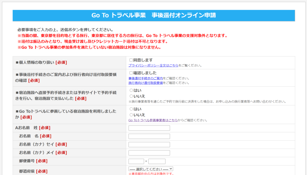 Go Toトラベルキャンペーン事後還付郵送での申請