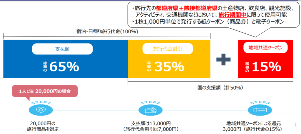 Go Toトラベルキャンペーン「地域共通クーポン」制度で知っておきたい7つのポイントをまとめました。地域共通クーポンは2020年10月1日から配布がスタートし、35%の宿泊補助とは別に旅行代金の15%を旅行先の土産物店などで使えるクーポン(1日1泊あたり6000円、日帰り旅行は3000円が上限)として還元する制度です。
