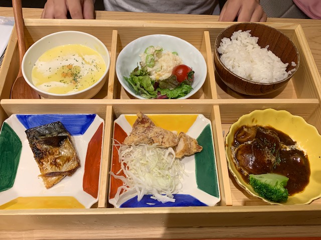 ごはんと、おかず2品、サラダ、汁物、ドリンクをそれぞれ好きなものを選んで、まさしくわたしだけの定食を作ることができるのも面白いです