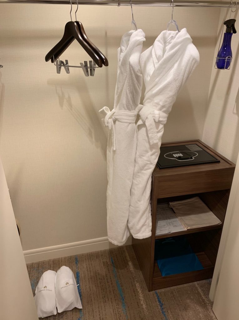 部屋を入ってすぐにあるクローゼットの中にはバスローブとスリッパがあります。スリッパはフカフカで気持ちよかったです。