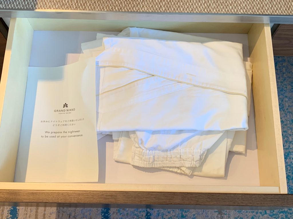 テレビ下の引き出しを開けるとセパレートとタイプのパジャマが入っています