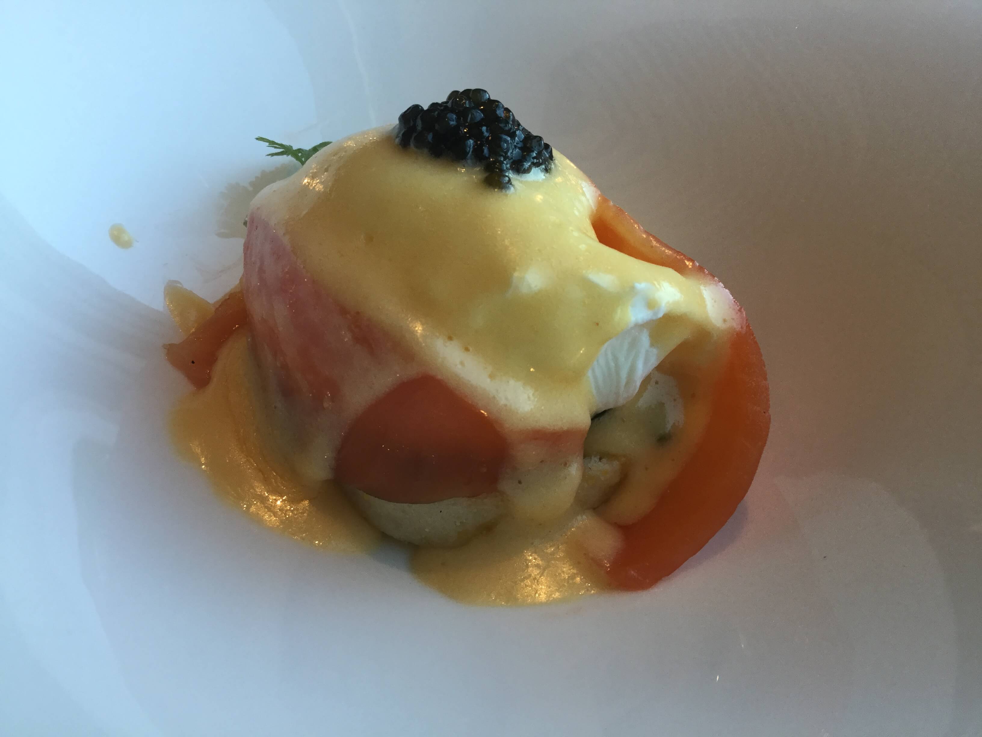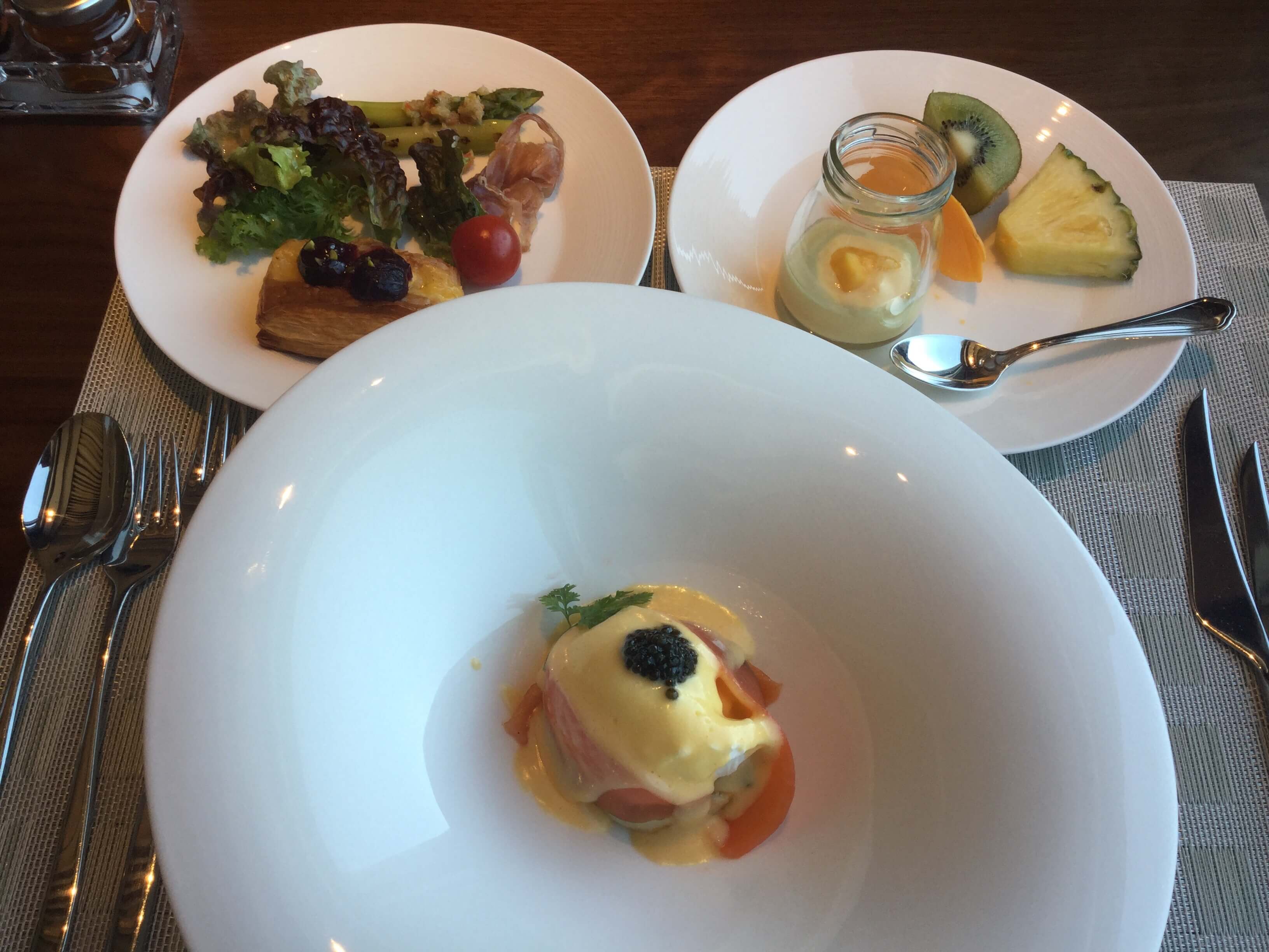 トロトロ卵の甘味がキャビアとスモークサーモンの塩味で引き立てられ、オランデーズソースもクリーミーでとても美味しかったです!朝食とは思えない贅沢!