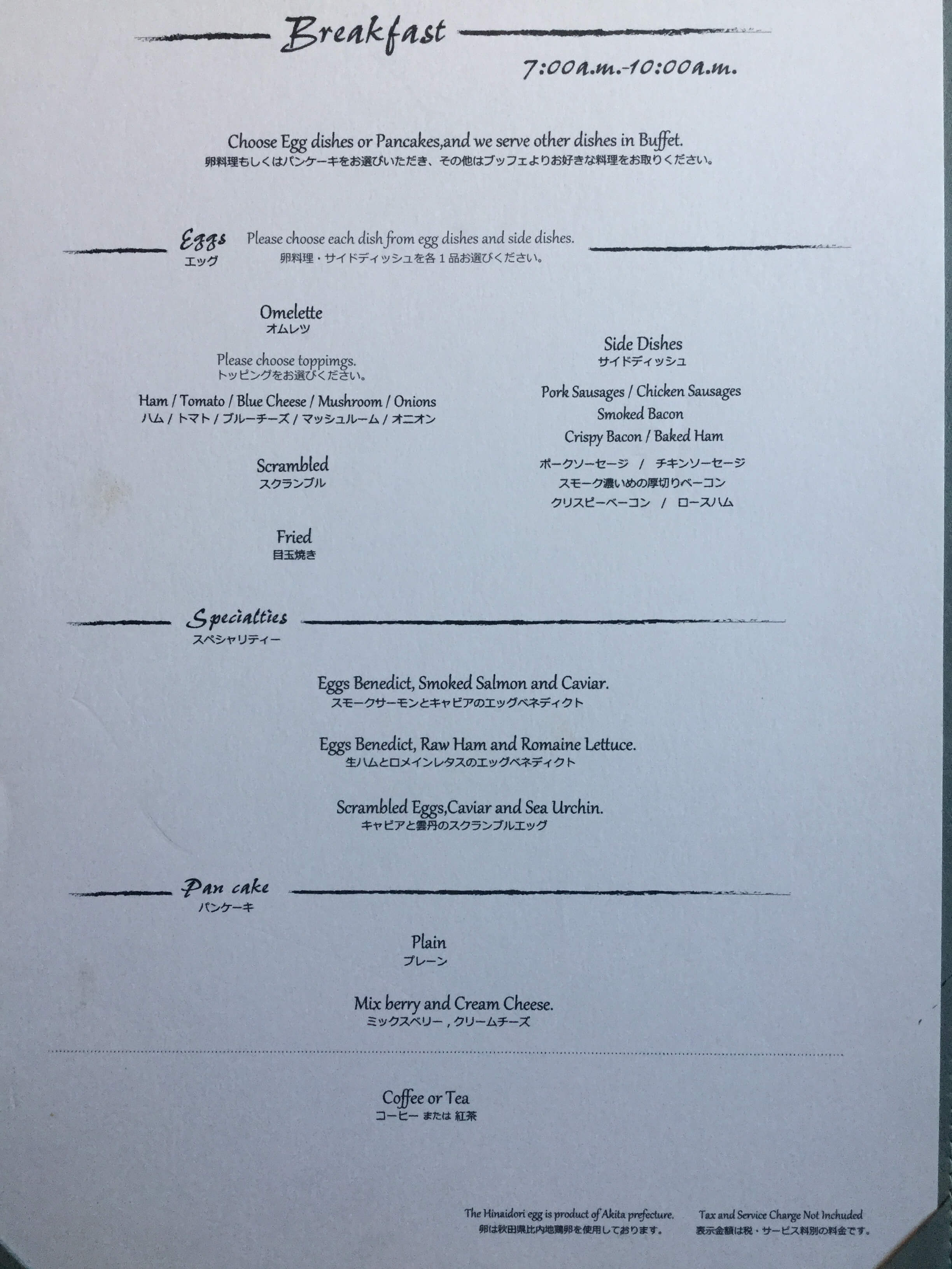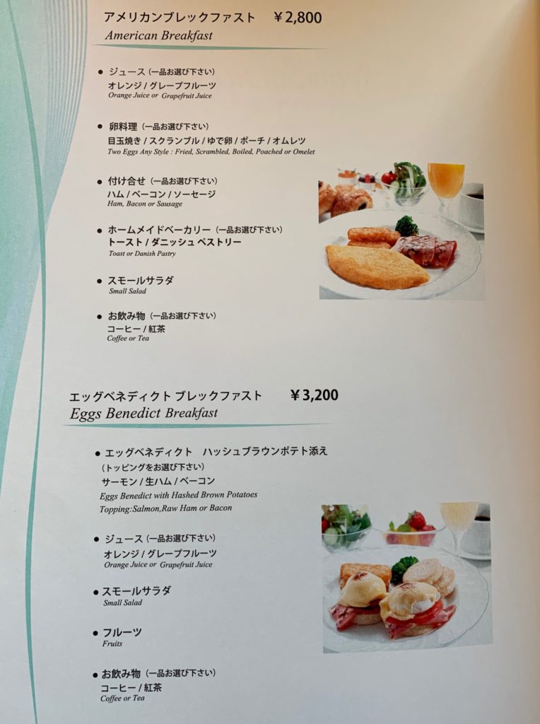 朝食付きのプランでは各々が宿泊しているプランにより制限があるとは思いますが5パターンの朝食につきご紹介します。そのうち3つは実際に食べましたので朝食の様子を詳しくご紹介します。