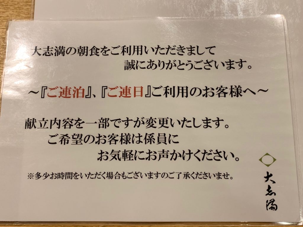 こんなに朝食会場があるので毎日和定食を選択する方も少ないとは思いますが、連泊の場合は一部メニューを変更してもらえるようです