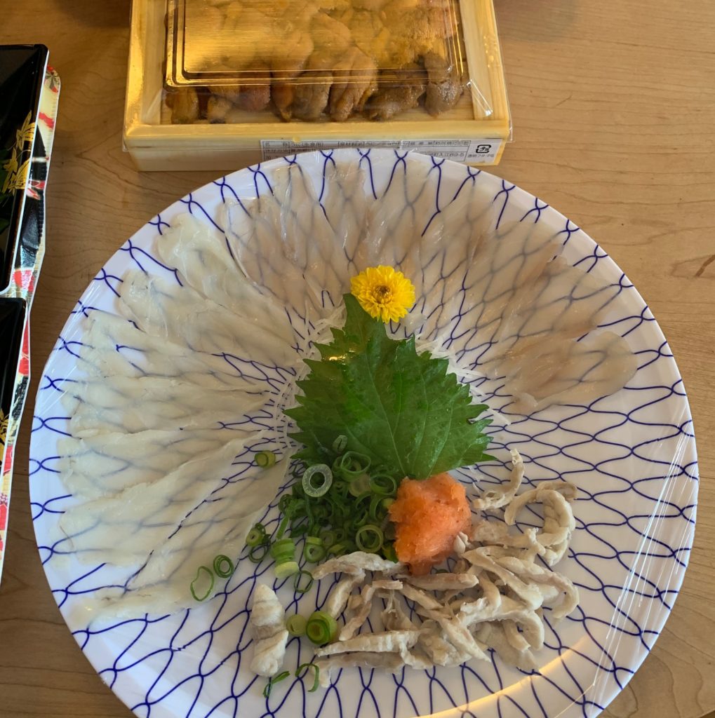 とらふぐてっさ、うに1枚