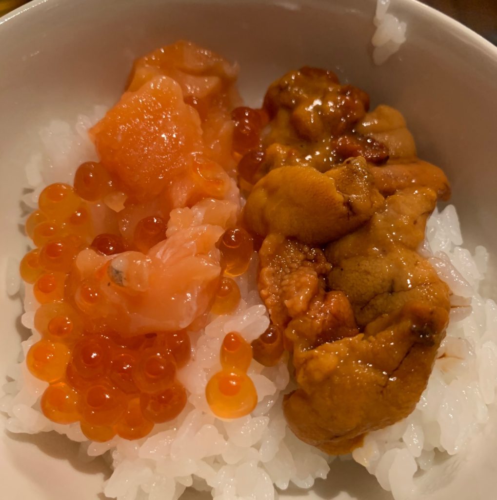 てっさ1枚に箱うにが1枚!これを見るだけでテンションが上がります(笑)