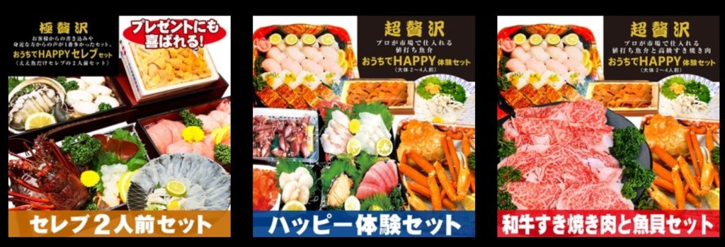 「おうちでHappy体験セット」はちょっと量が多いという方には量は少なめだけどもっと豪華な食材が使われた「おうちでHAPPYセレブセット(ええ魚だけセレブの2人前セット)」が用意されています
