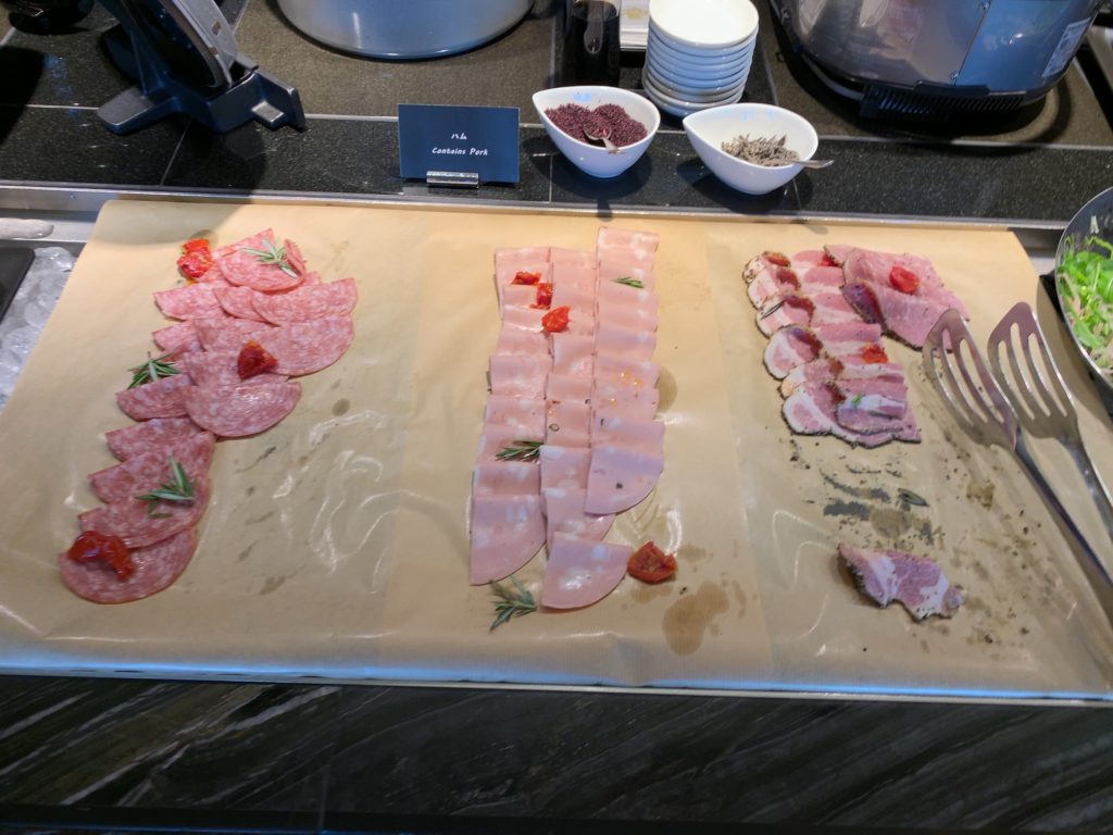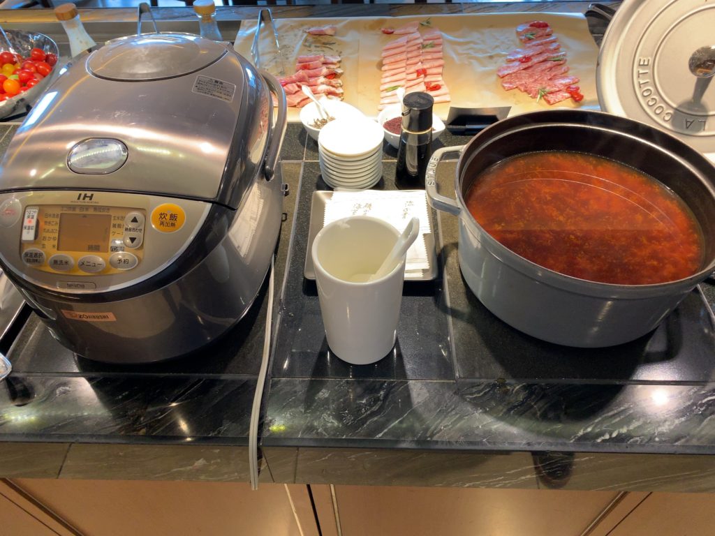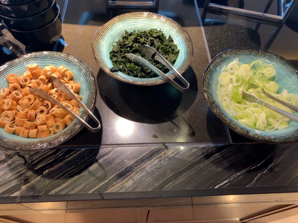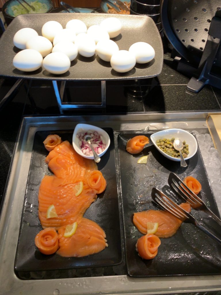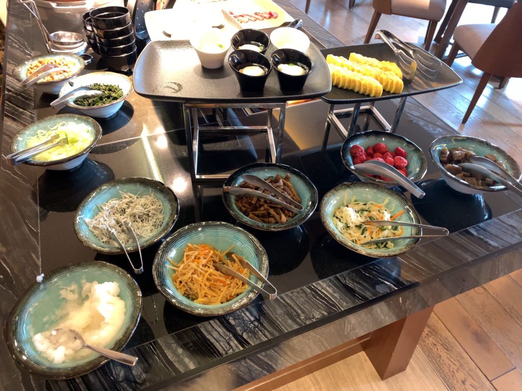 ヒルトンダイヤモンド会員あるいはエグゼクティブフロア宿泊者はラウンジでの朝食の他に1階にあるインプレイス3-3朝食ブッフェも選択できます。インプレイス3-3朝食ブッフェのメニューについては以下の記事をご参照ください。