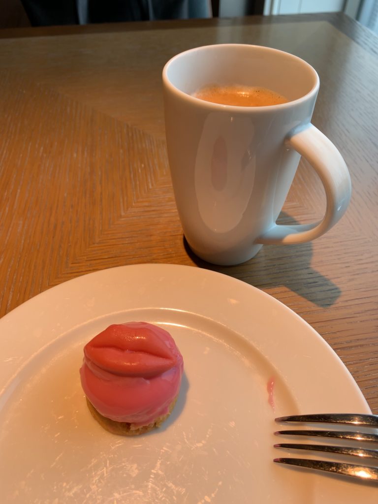 このムースケーキは上に唇型のチョコが載っているのですが不評なのか取りにくくて落としただけなのか唇型のチョコだけたくさん残っていてなんだか気持ち悪かったです(笑)