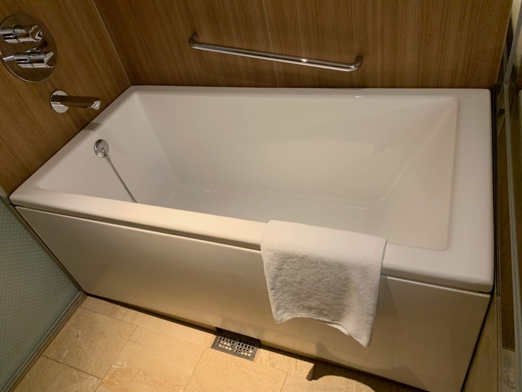 広々したベッドとデスク、洗い場と浴槽もあるバスルームを備えており、仕事もしやすかったですし、お風呂にもゆっくり入れて快適に滞在できました。