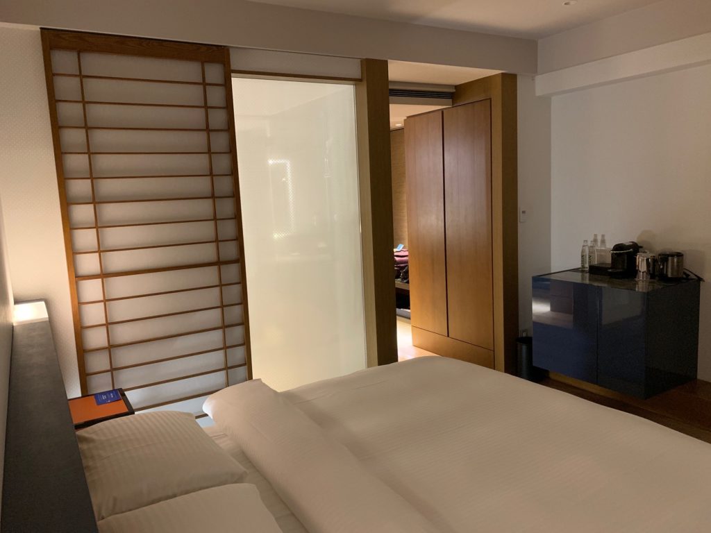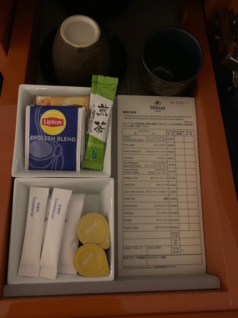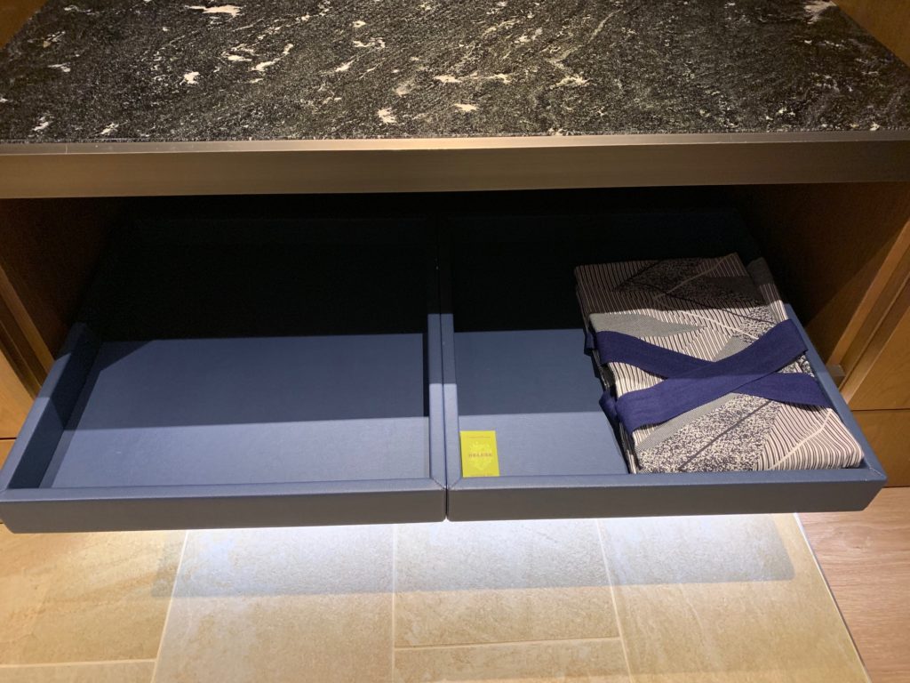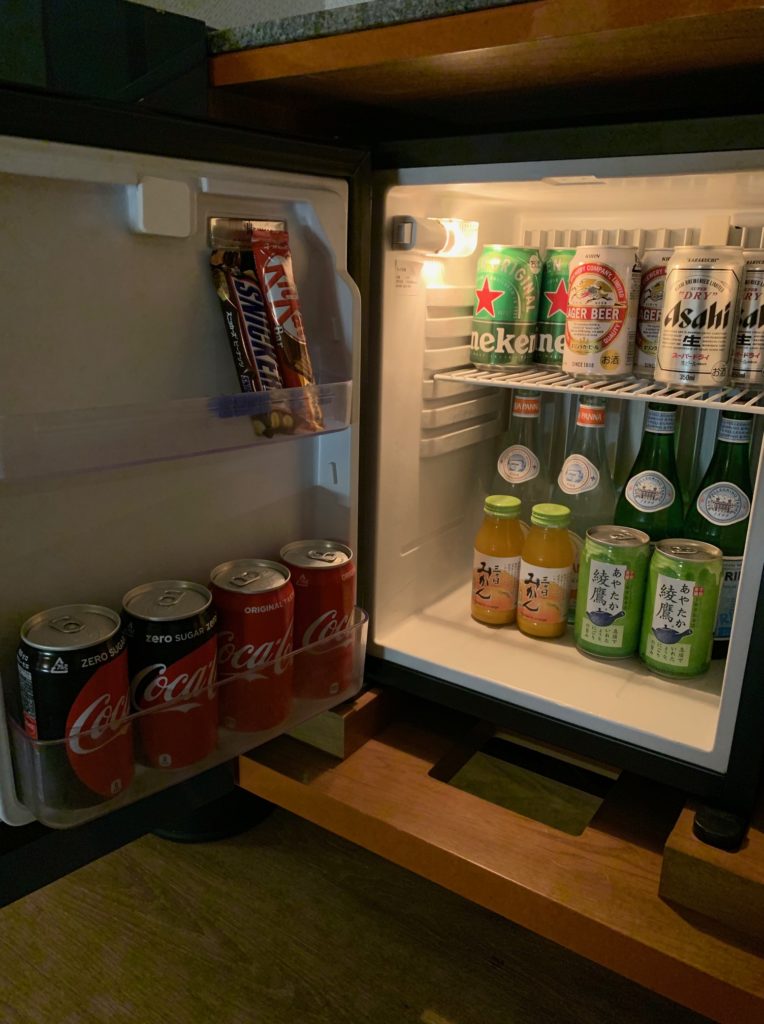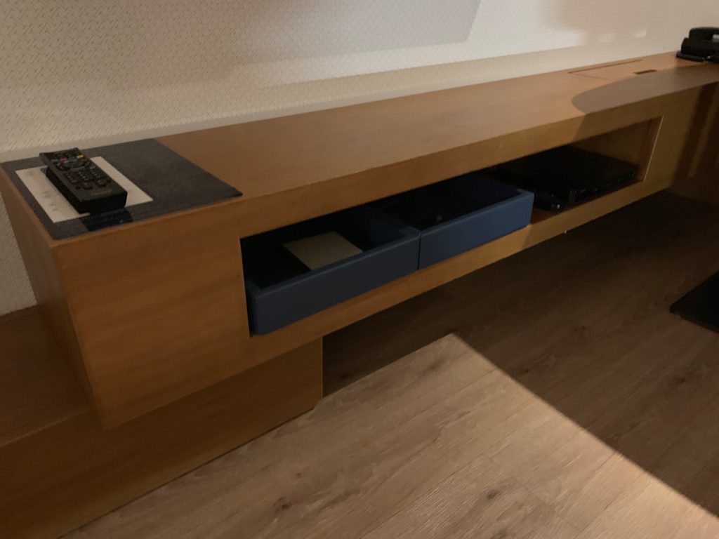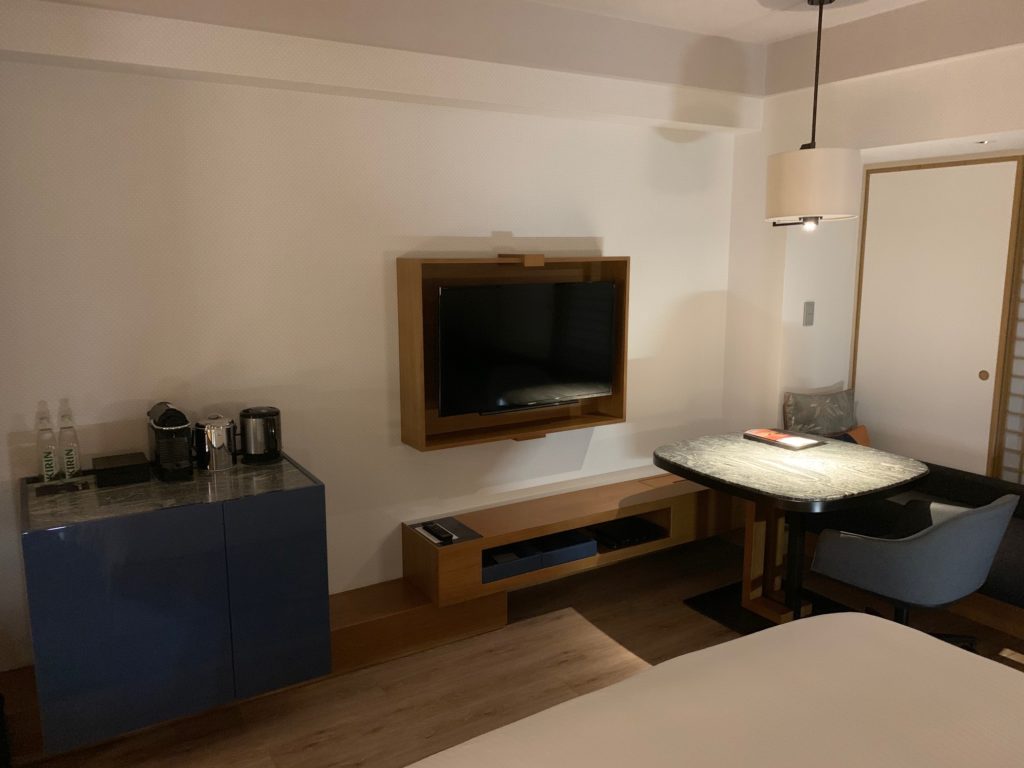 キャビネット上にはサービスのミネラルウォーターが2本。前回も感じましたが瓶だとちょっと不便です…
