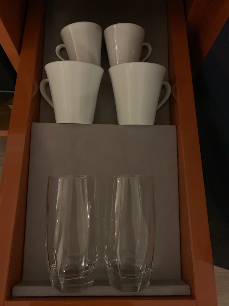 引き出しの上段には湯呑みと緑茶、ハーブティー、紅茶