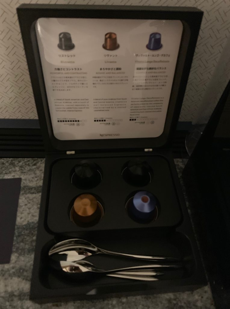 ネスプレッソとアイスペール、電気ケトルもあります。