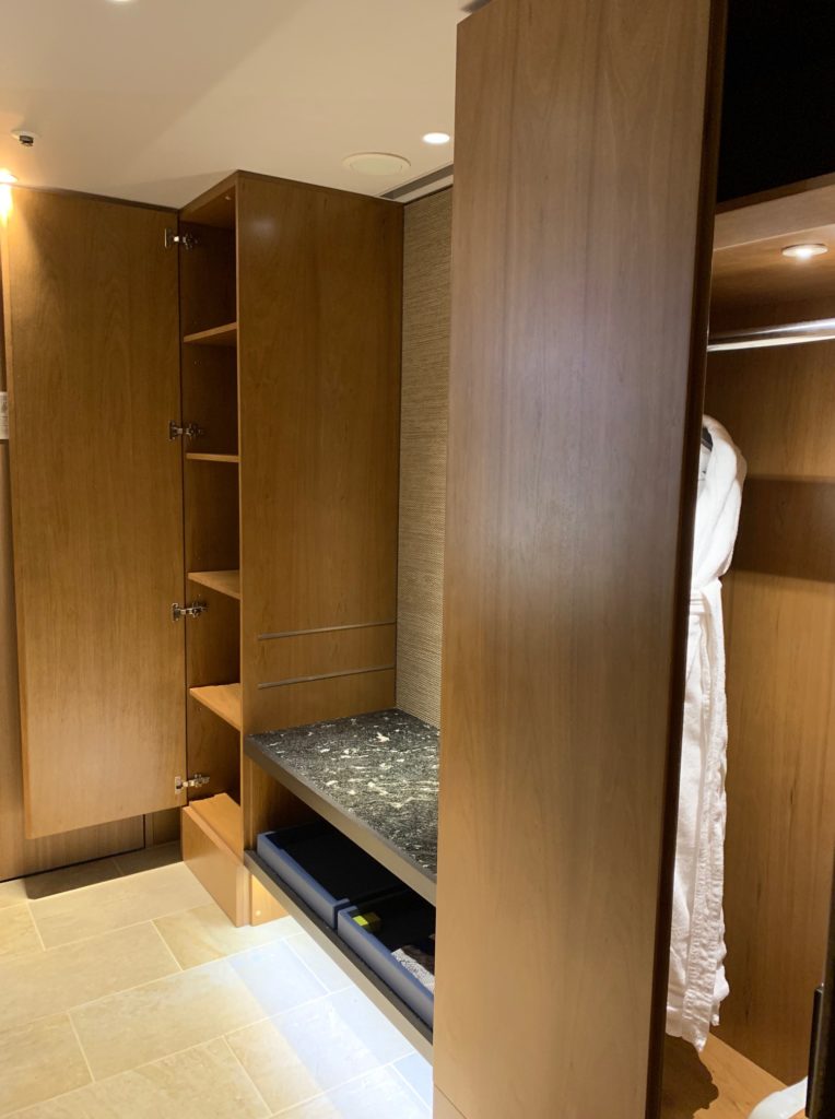 バゲッジラックの部屋側はクローゼット、入り口側は棚になっています