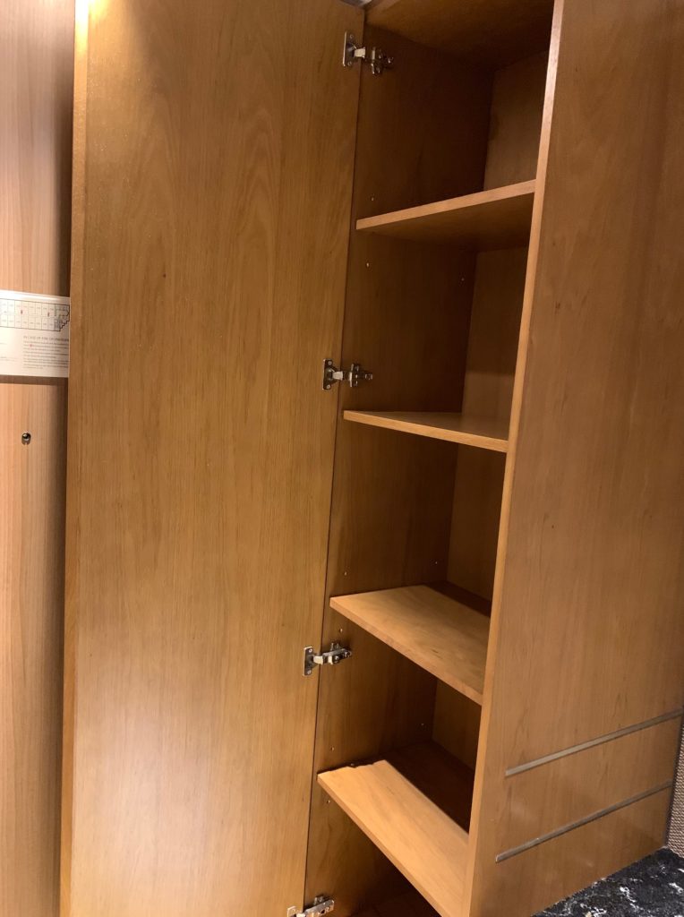 キャビネットの中はこんな感じで、左側は冷蔵庫、右側は引き出しです。