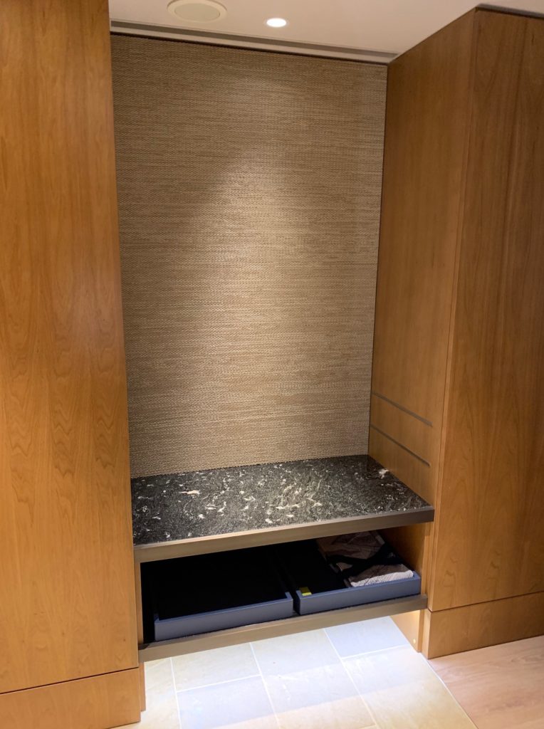 入り口入って左側、ウェットエリアの扉の前にはバゲッジラックがあります