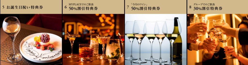 ・本特典券は、ヒルトン・ダイニング・プラス会員特典のレストラン25%割引と併用できます。6. MYPLACEでのご飲食50%割引特典券