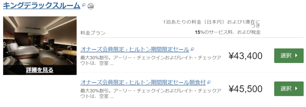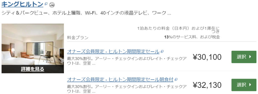 今回のヒルトン春セールは30%割引となっておりHPCJの25%割引との差はわずかです。HPCJについては以下の記事をご参照下さい。
