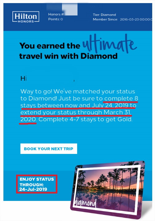 最近のブログなどを見ているとヒルトンダイヤモンド会員にステータスマッチされるのは