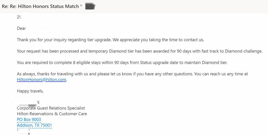 As always, thanks for traveling with us and please let us know if you have any other questions. You can reach us any time at HiltonHonors@hilton.com.