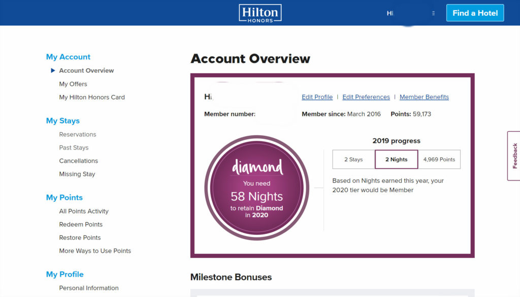8泊→2025年3月までヒルトンゴールド会員の資格が継続