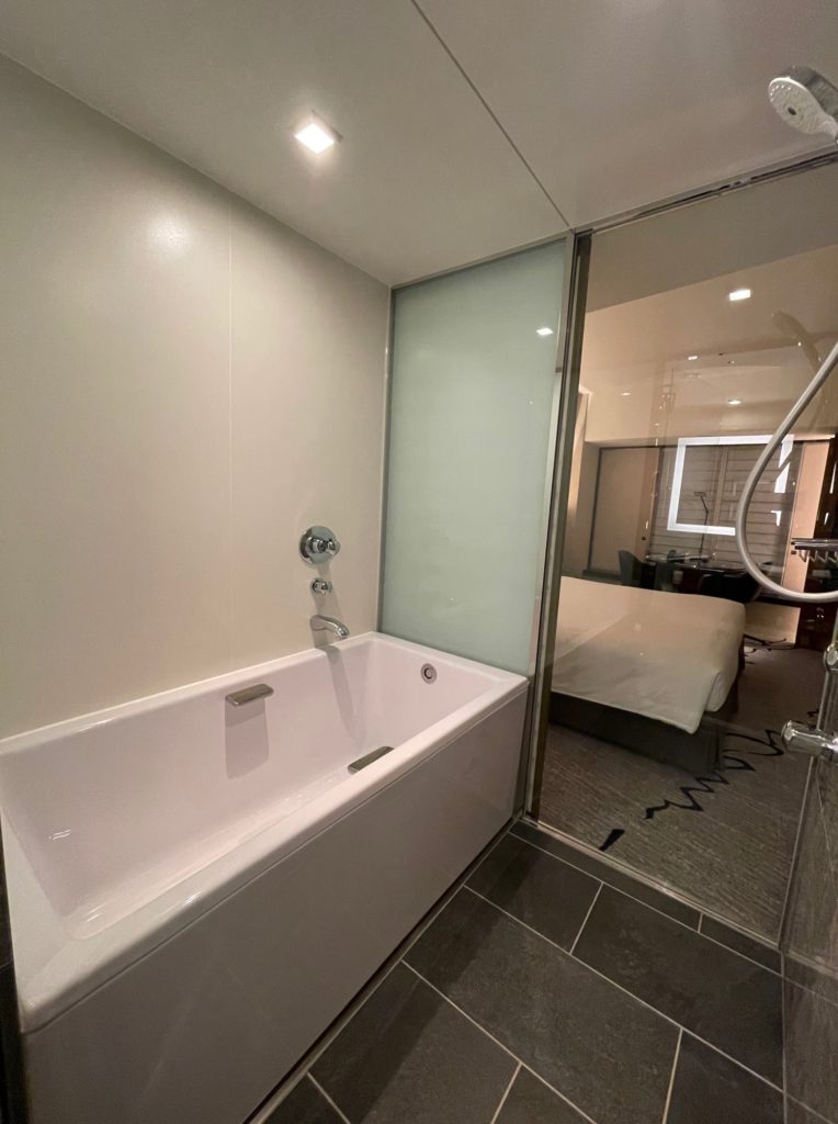 お風呂はガラス張りで開放感抜群(笑)浴槽は大きくて深くいい感じです