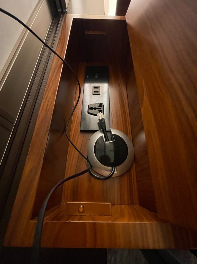 テーブルの横にはコンセントやLANケーブルが入ったボックスがあります。今回はPCを使ってZoomでの会議に参加するので使い勝手がよくよかったです。