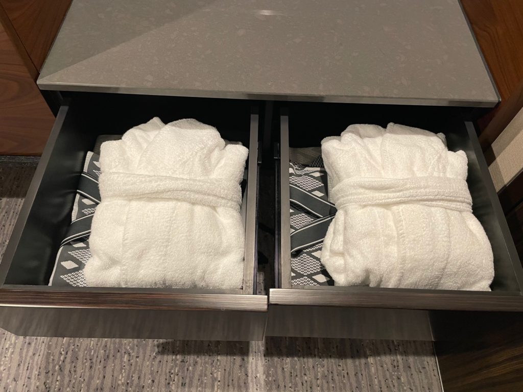 バゲッジスペースの下の引き出しにはバスローブと浴衣が入っています