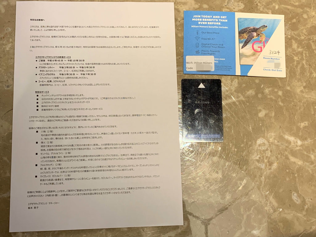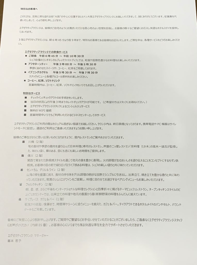 チェックイン時にエグゼクティブラウンジの案内を頂きました。