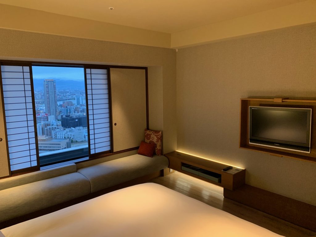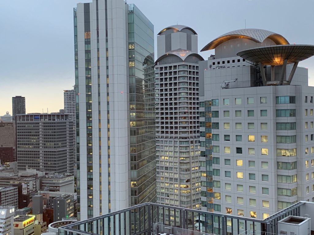 窓からはリッツカールトン大阪などの西梅田の高層ビルが見えます