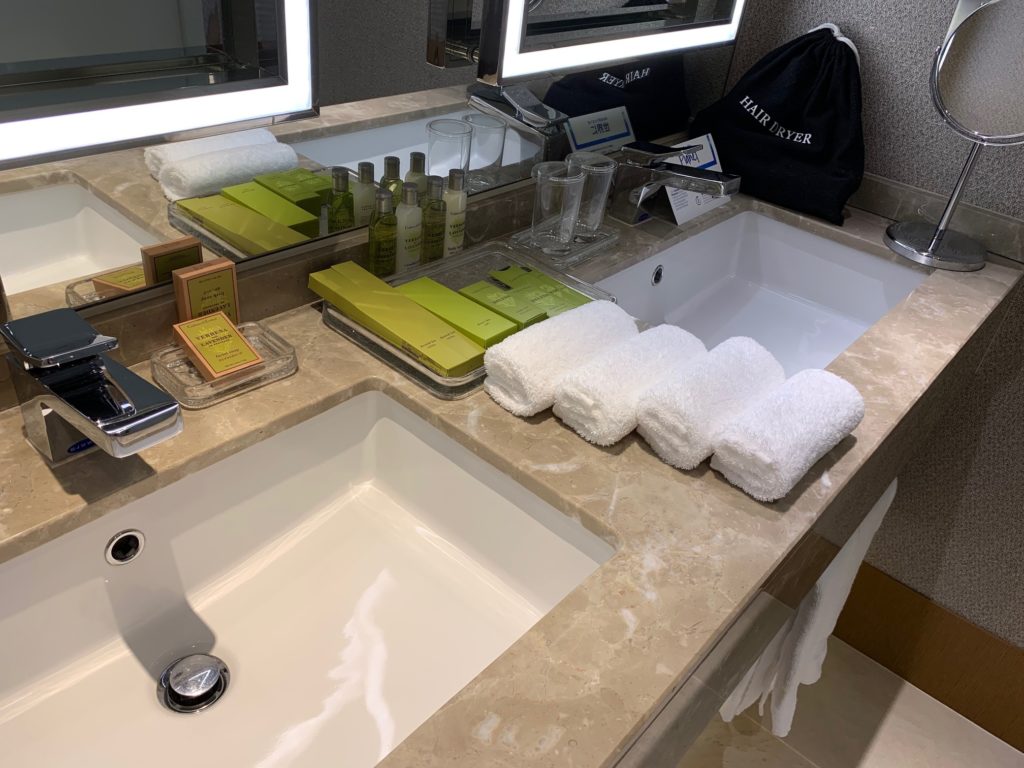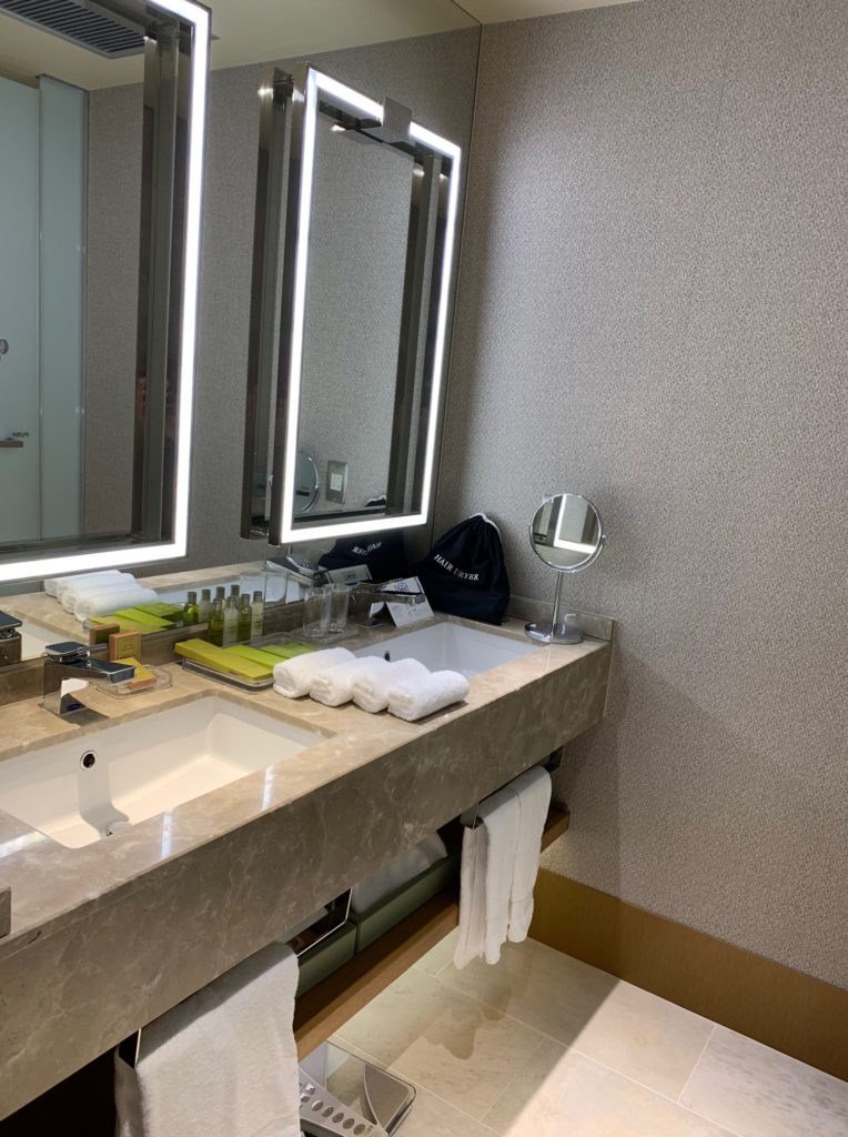 今回は最安ヒルトンルームダブルで予約していました。事前でアプリでチェックしていると当日にエグゼクティブルームダブルにアップグレードされているのは確認していました。