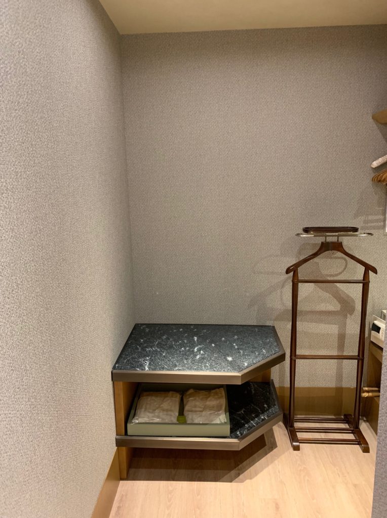 フロントでチェックインしている時に事前にアプリでチェックインしていたエグゼクティブルームダブルの部屋番号をカードキーホルダーに書いた後、少しお待ちくださいと席を外されました。