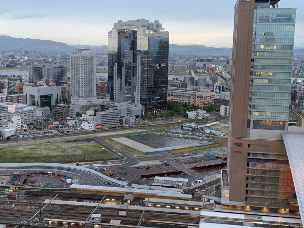 大阪駅やウェスティン大阪、空中庭園で有名な梅田スカイビルが見えます。この部屋は淀川花火の日は花火も見えて(スカイビルには隠れそうですが…)よさそうですね~