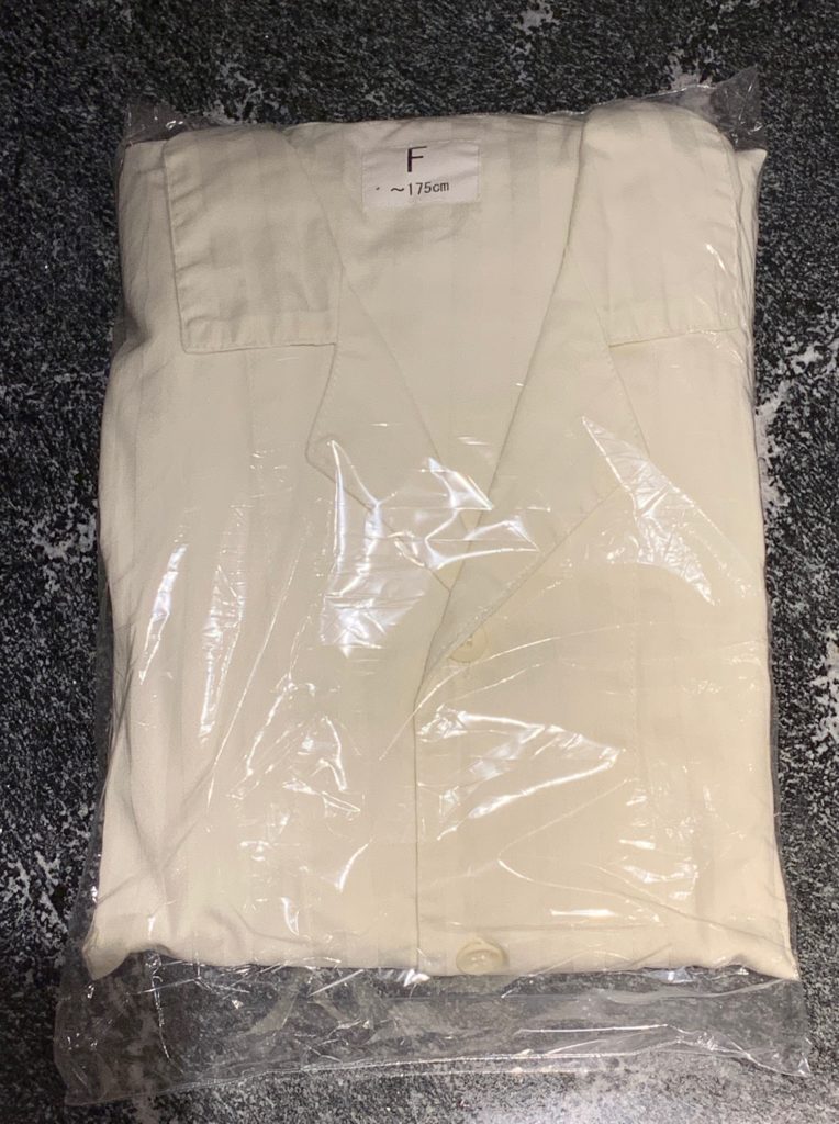 パジャマはワコール製?上下セパレートで光沢ある生地の肌触りがよかったです。