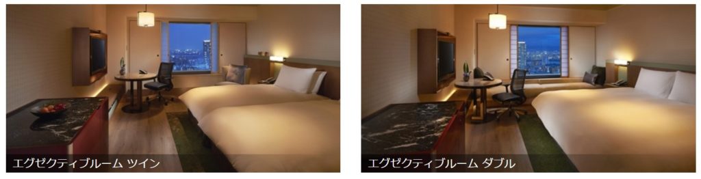エグゼクティブルームダブルの客室の様子は以下の記事をご参照ください