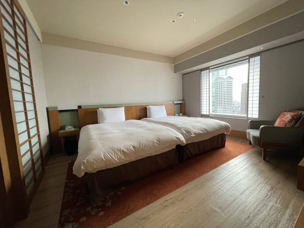 ヒルトン大阪エグゼクティブスイートルームツインの室内をご紹介します。ヒルトン大阪は公式サイトからの予約であれば12歳未満は無料で宿泊できますが追加料金なしでエキストラベッドも入れて頂いていました。今回はヒルトンサマーセール、Go Toトラベルキャンペーン、アメックスキャンペーンのトリプル割引でお得に宿泊できました。