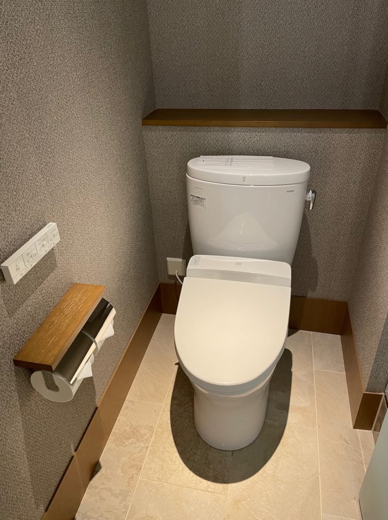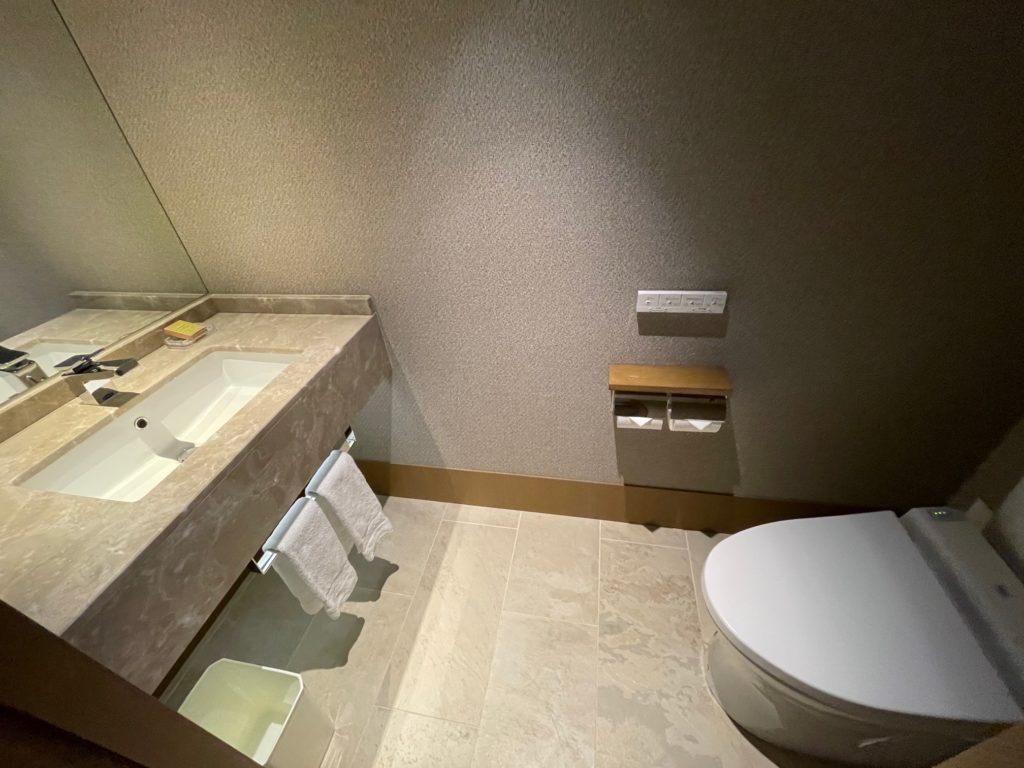 右手の扉はトイレ(その1)です。とても広くトイレの中に洗面台があります。