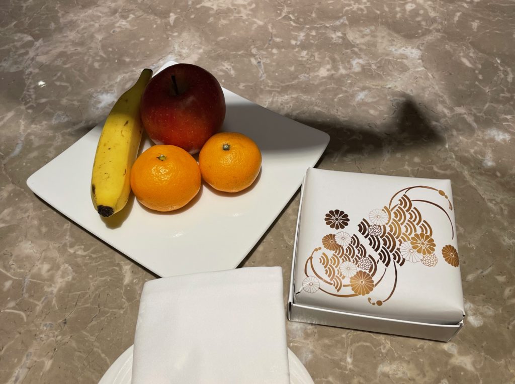 ウエルカムギフトはフルーツでした。箱の中には黒糖ラスクが入っていました!