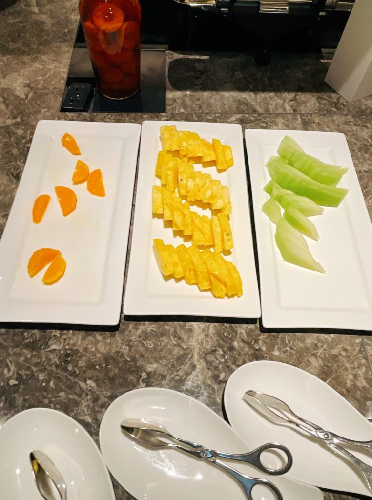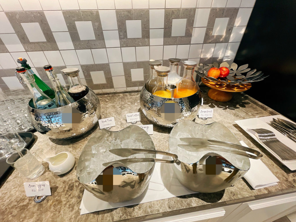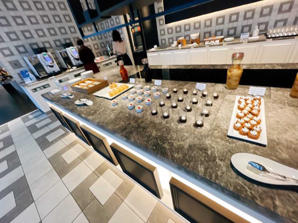 ラウンジは明るくモダンな雰囲気です。今まで平日しか利用したことがなかったので満席なのはびっくりしました…しかも、後半は隣の「ゴールデン キー クラブ」も開放されており、さらに驚きました