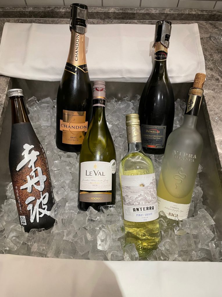 スパークリングワイン:シャンドン ブリュット(白)、ドネリ ランブルスコ・レッジアーノ アマービレ(赤)