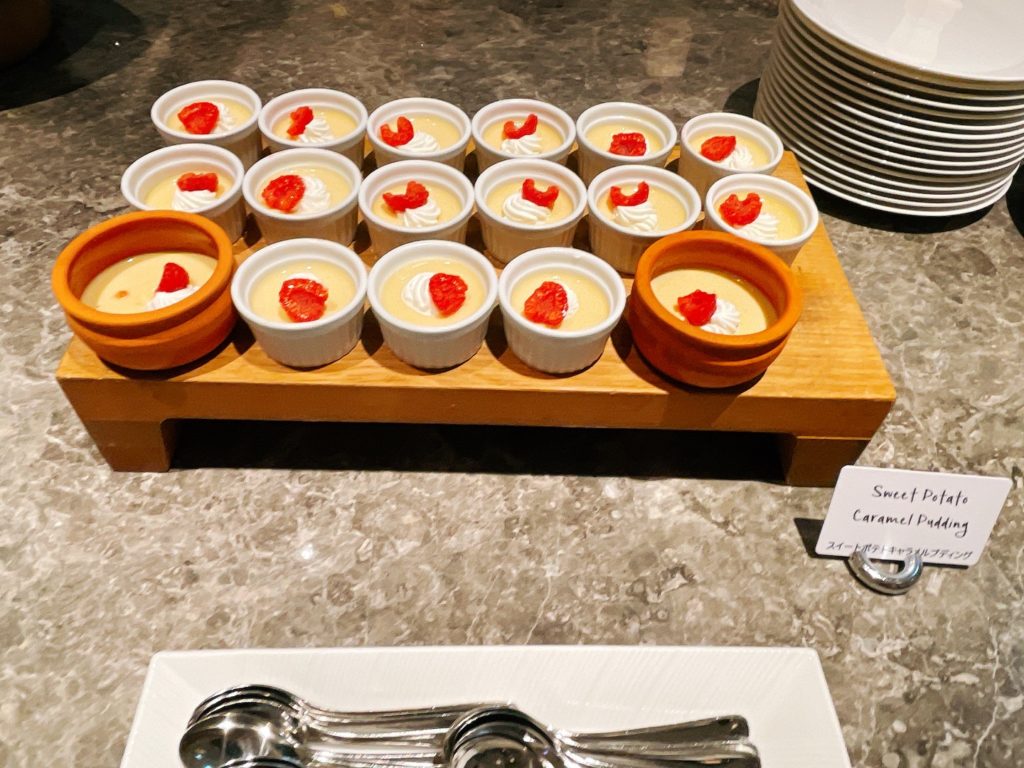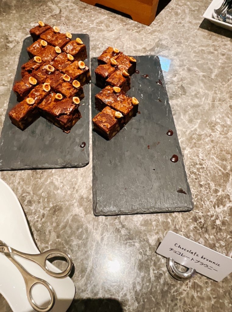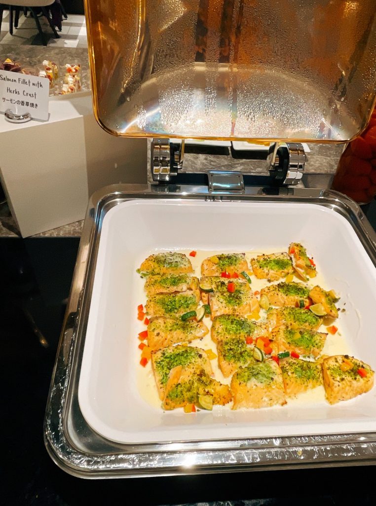真ん中のブッフェ台(下の写真は比較的人が少なかったアフタヌーンティーの時間に撮影したものです)にはホットミールやオードブル、デザートが並べられています