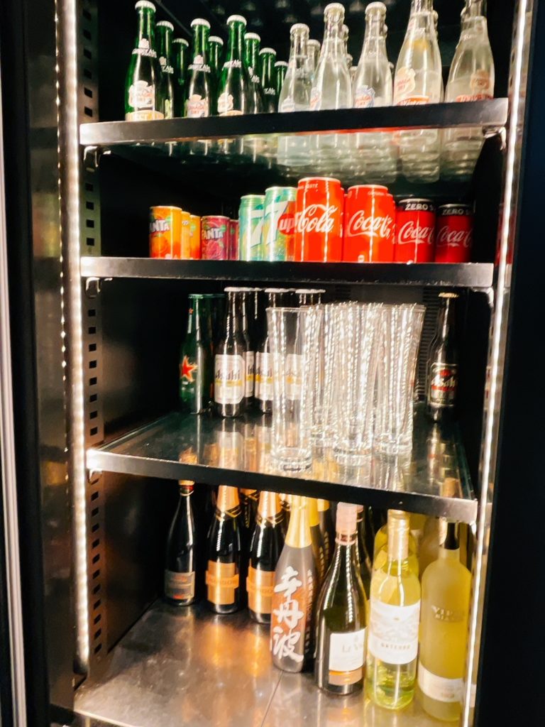 冷蔵庫内にはソフトドリンクやビールが並んでいます