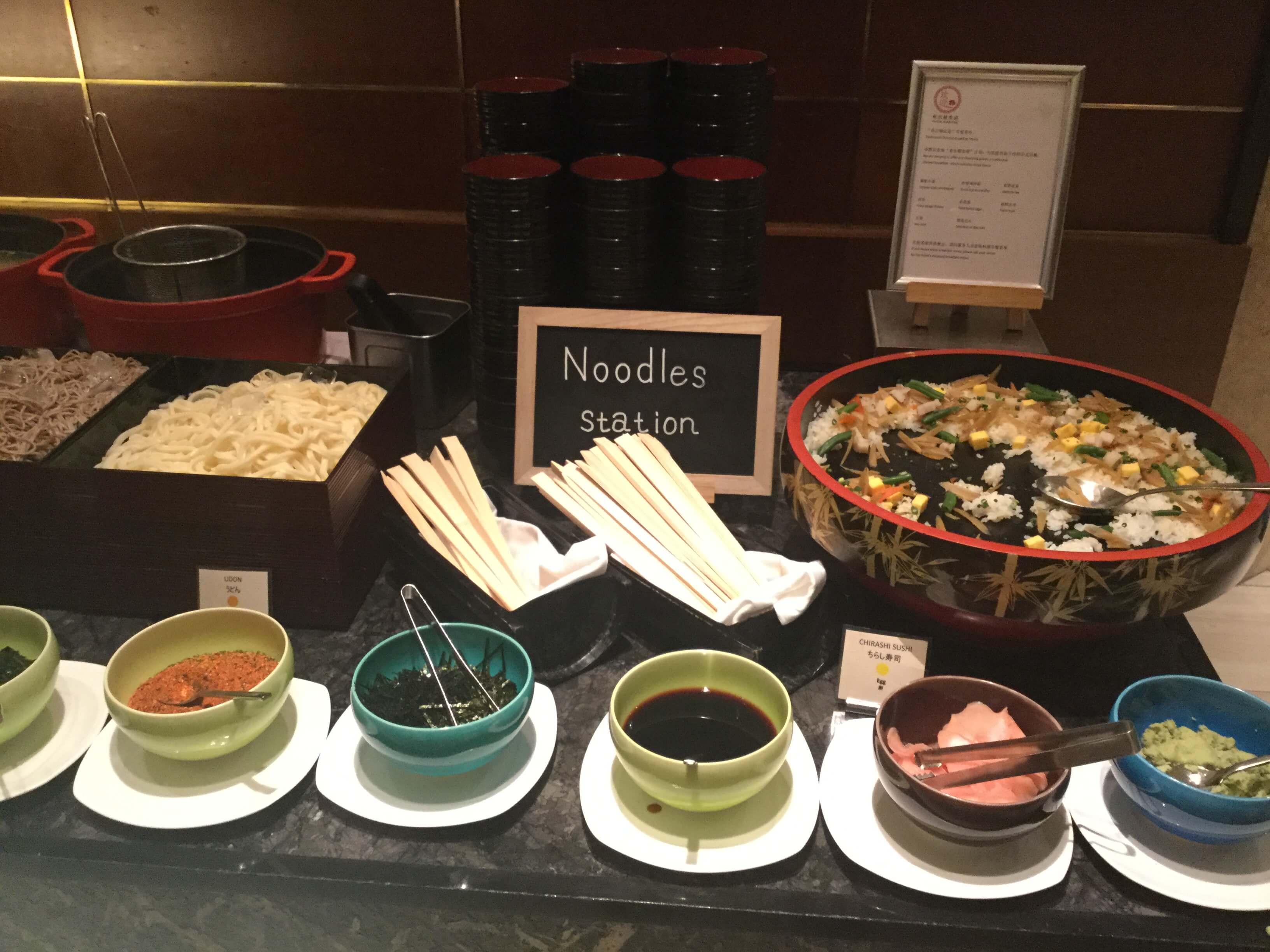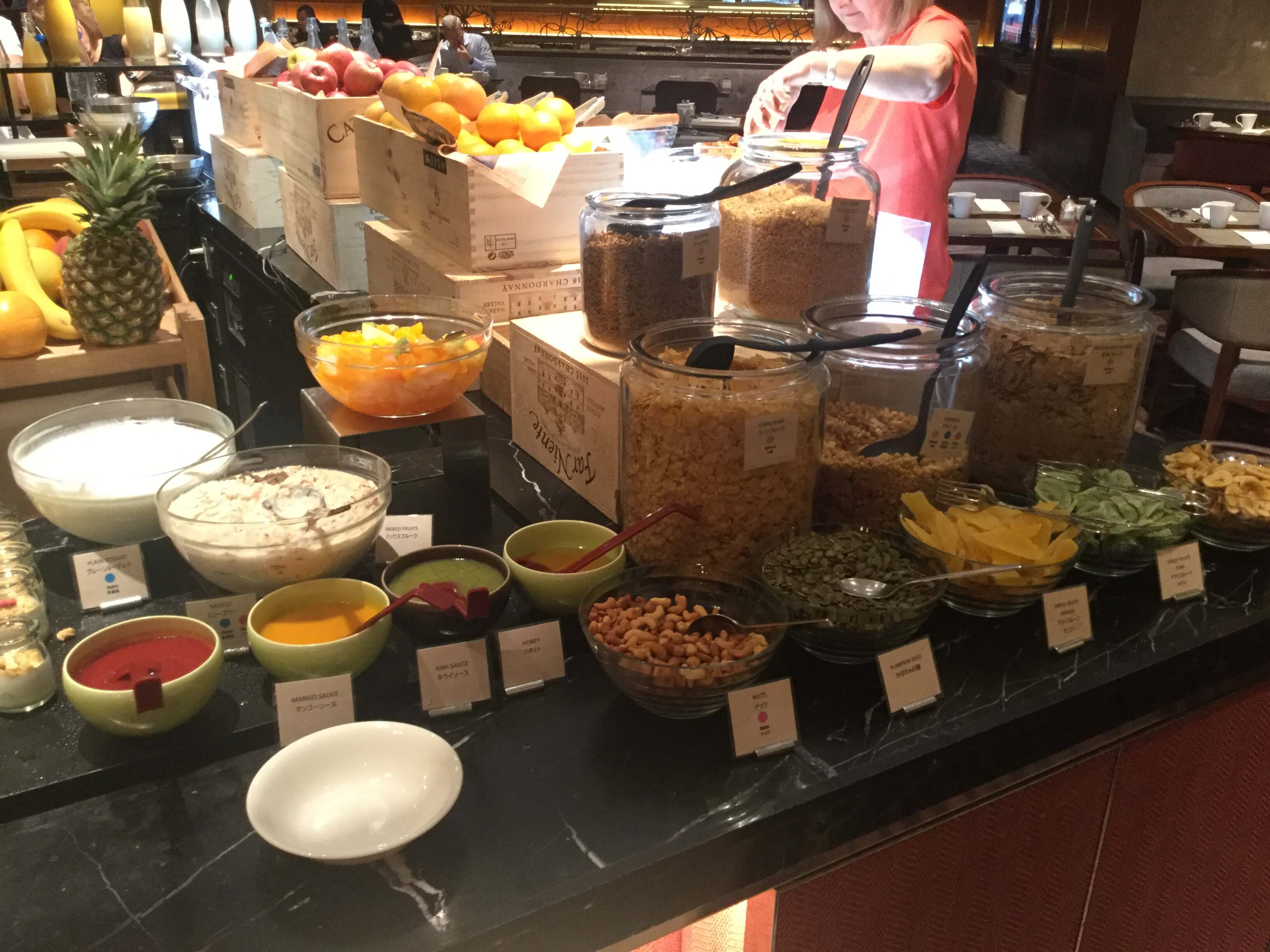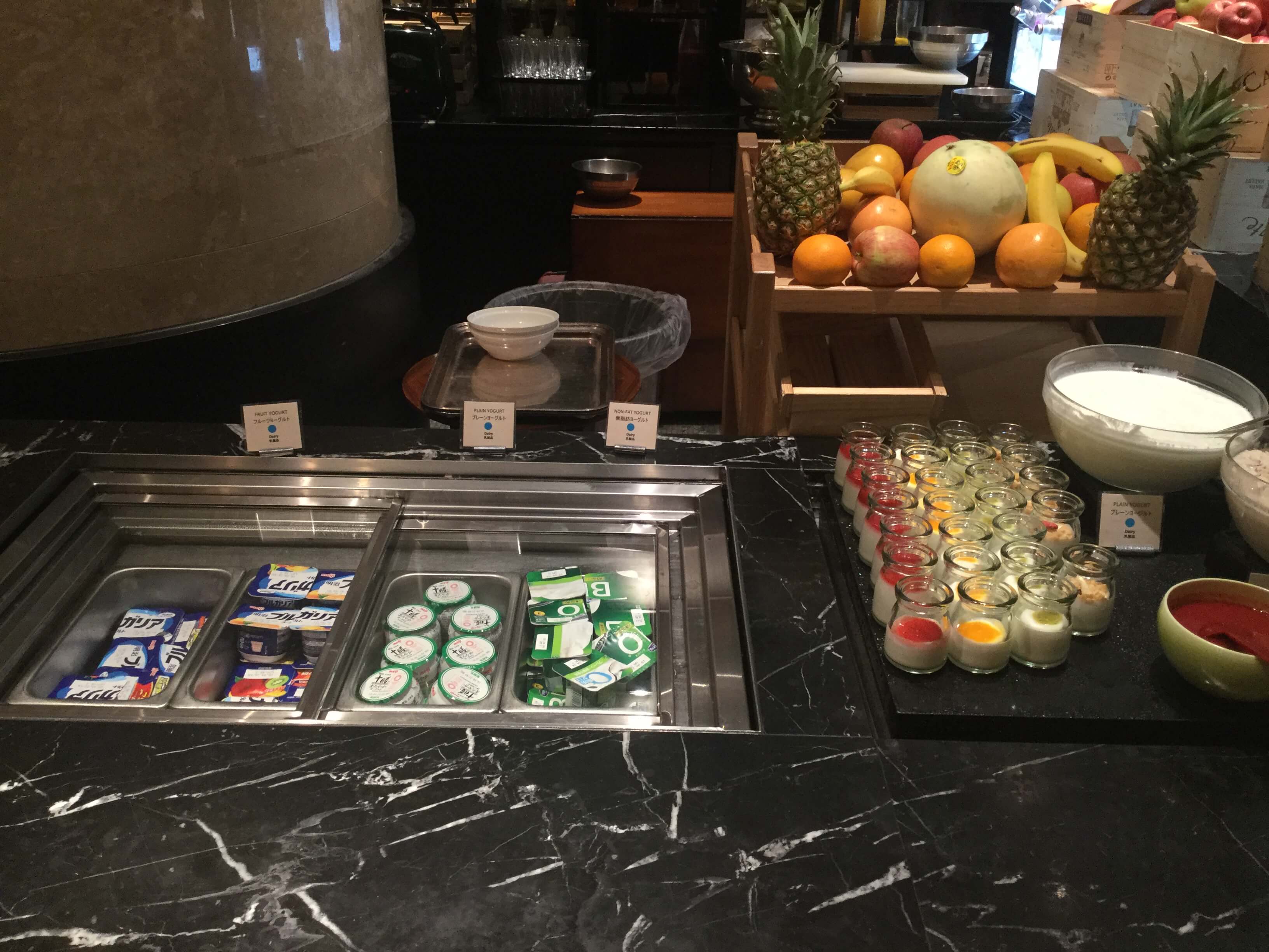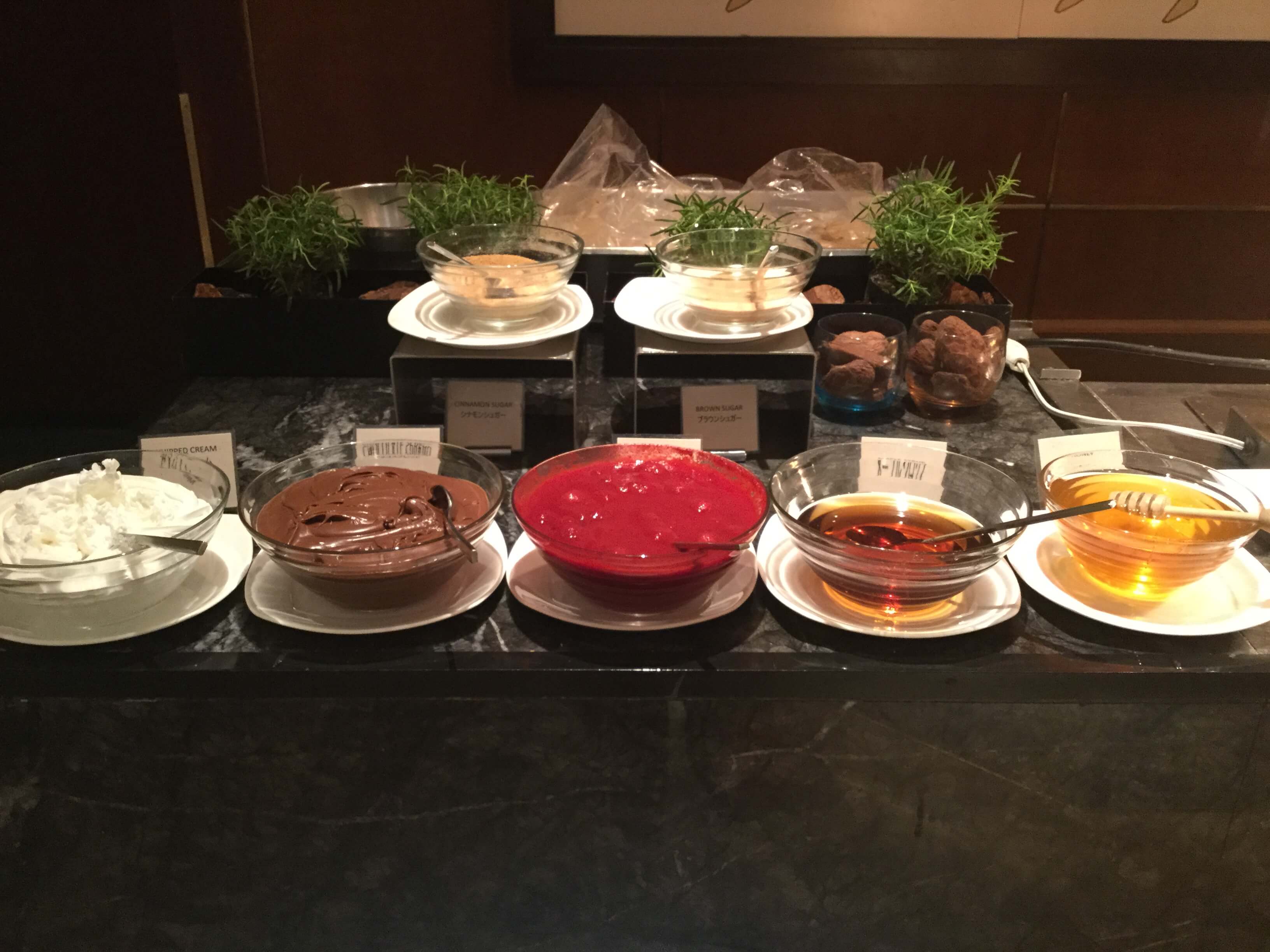 エグゼクティブラウンジの朝食ではないパンケーキやワッフル、スムージー、点心、ヌードルステーションのそばやうどん、お粥なども頂くことが可能です。フードの豊富さを求めるならマーブルラウンジも選択肢に入るでしょう。