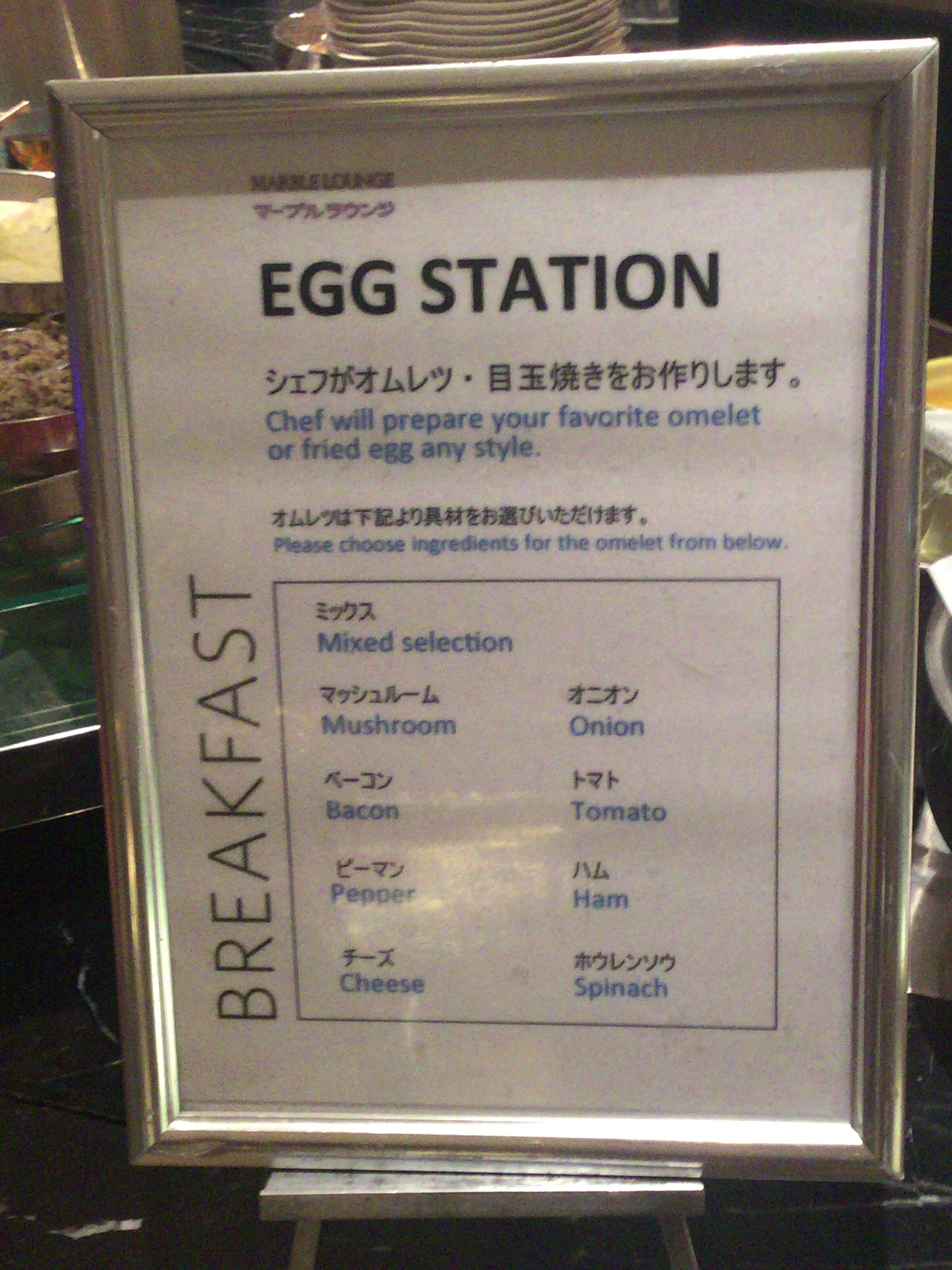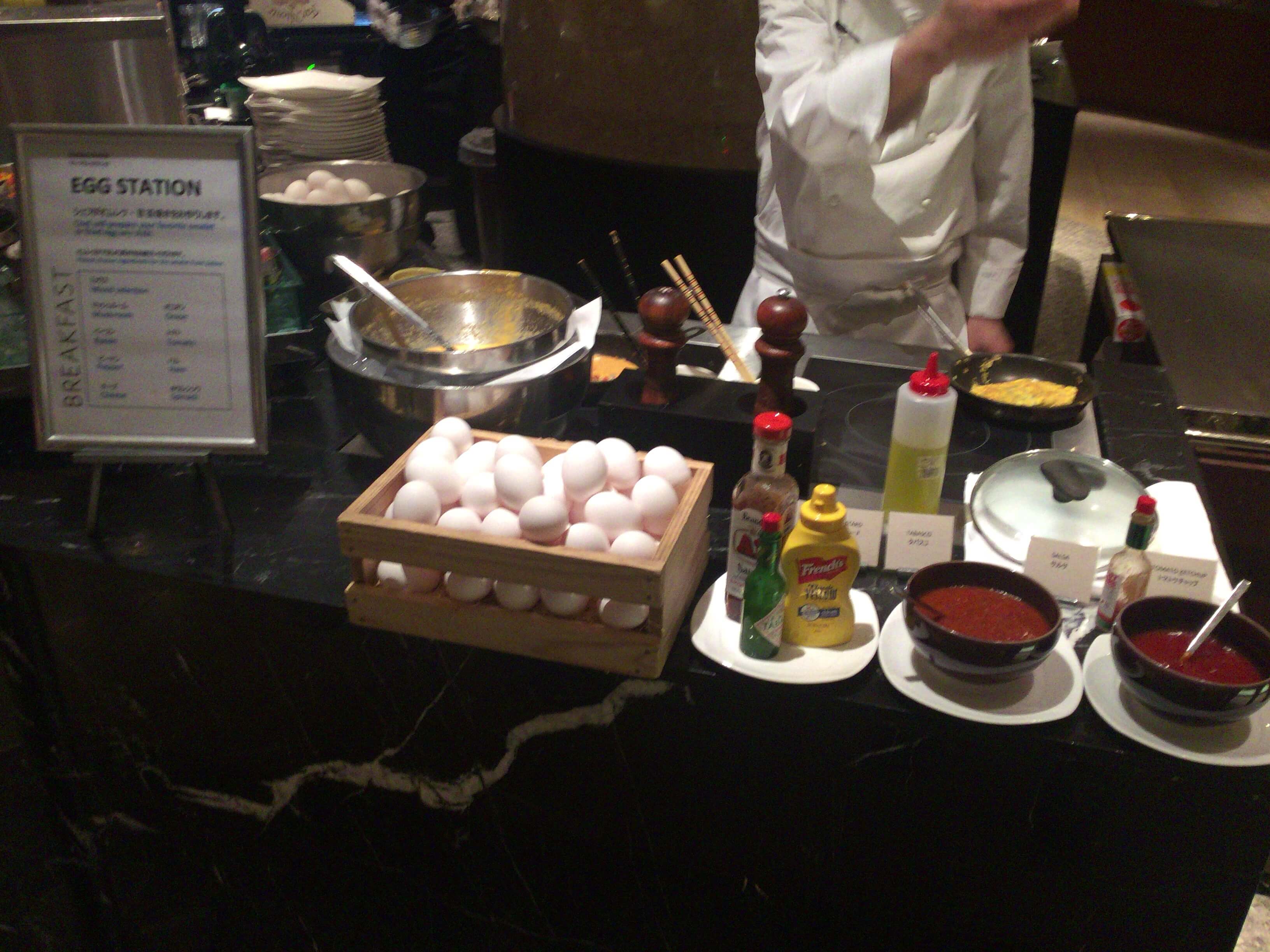 エッグステーションではオムレツや玉子焼きをシェフが焼いてくれます