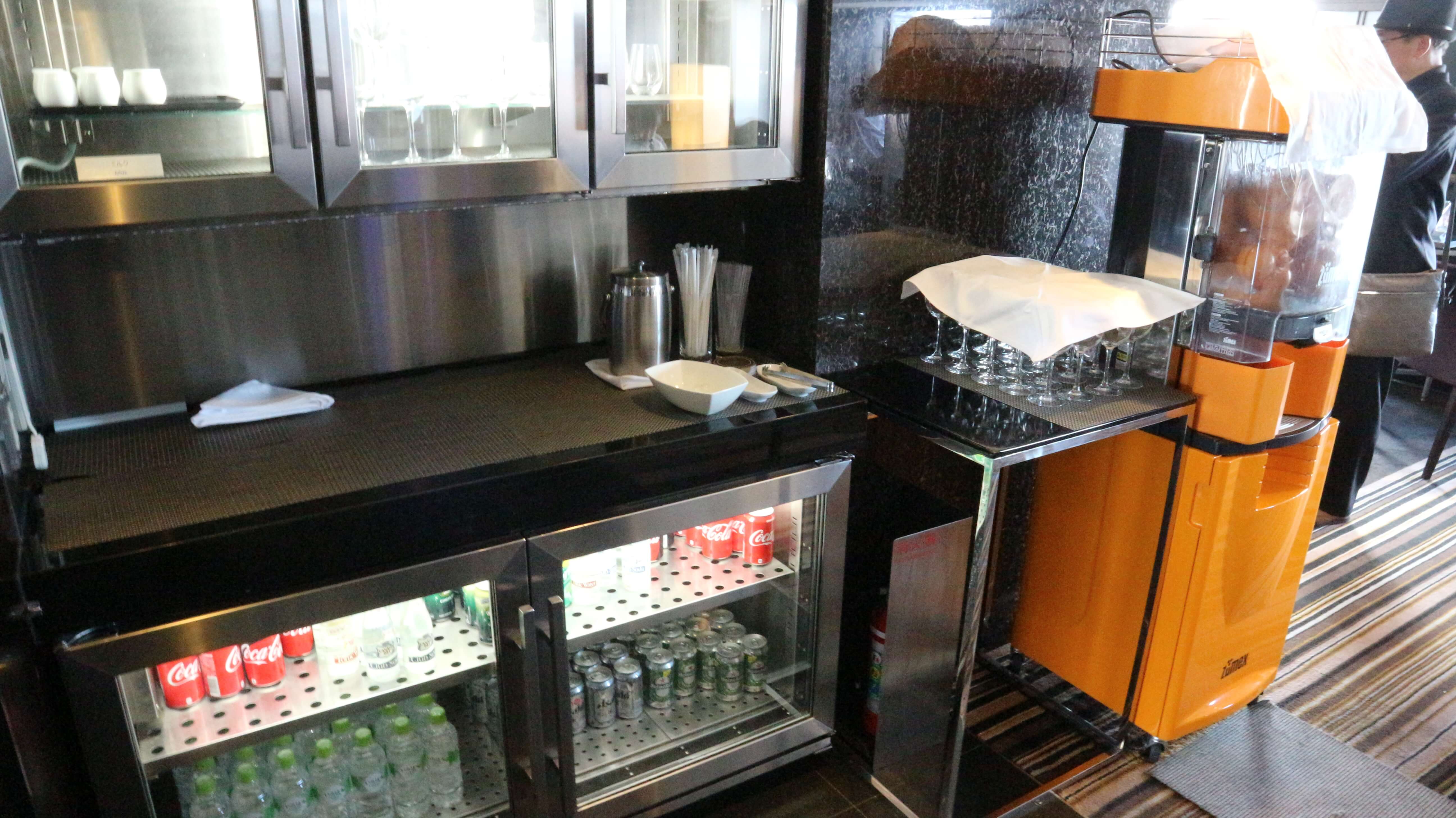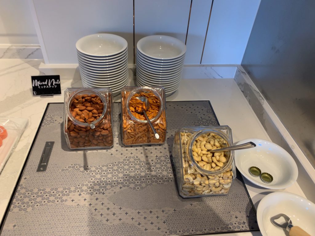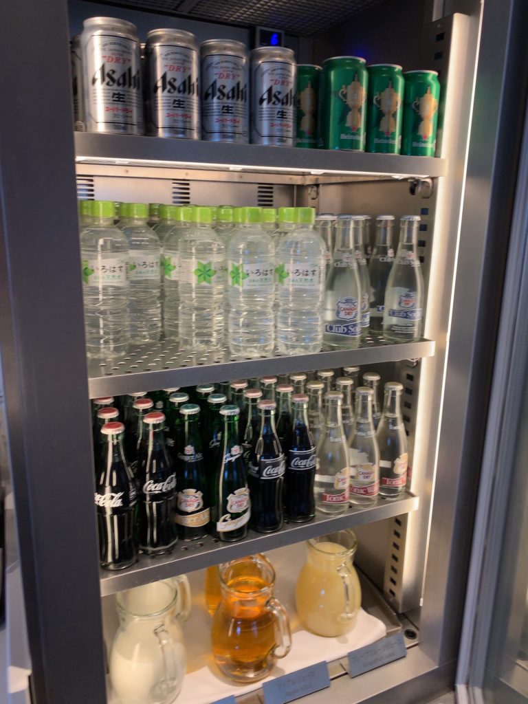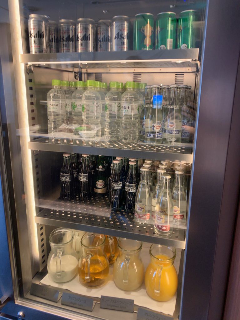 下の冷蔵ケースにはアサヒスーパードライとハイネケンの2種類の缶ビールがラウンジの営業時間中は終日入っていて朝から夜までビールを頂くことが可能です。