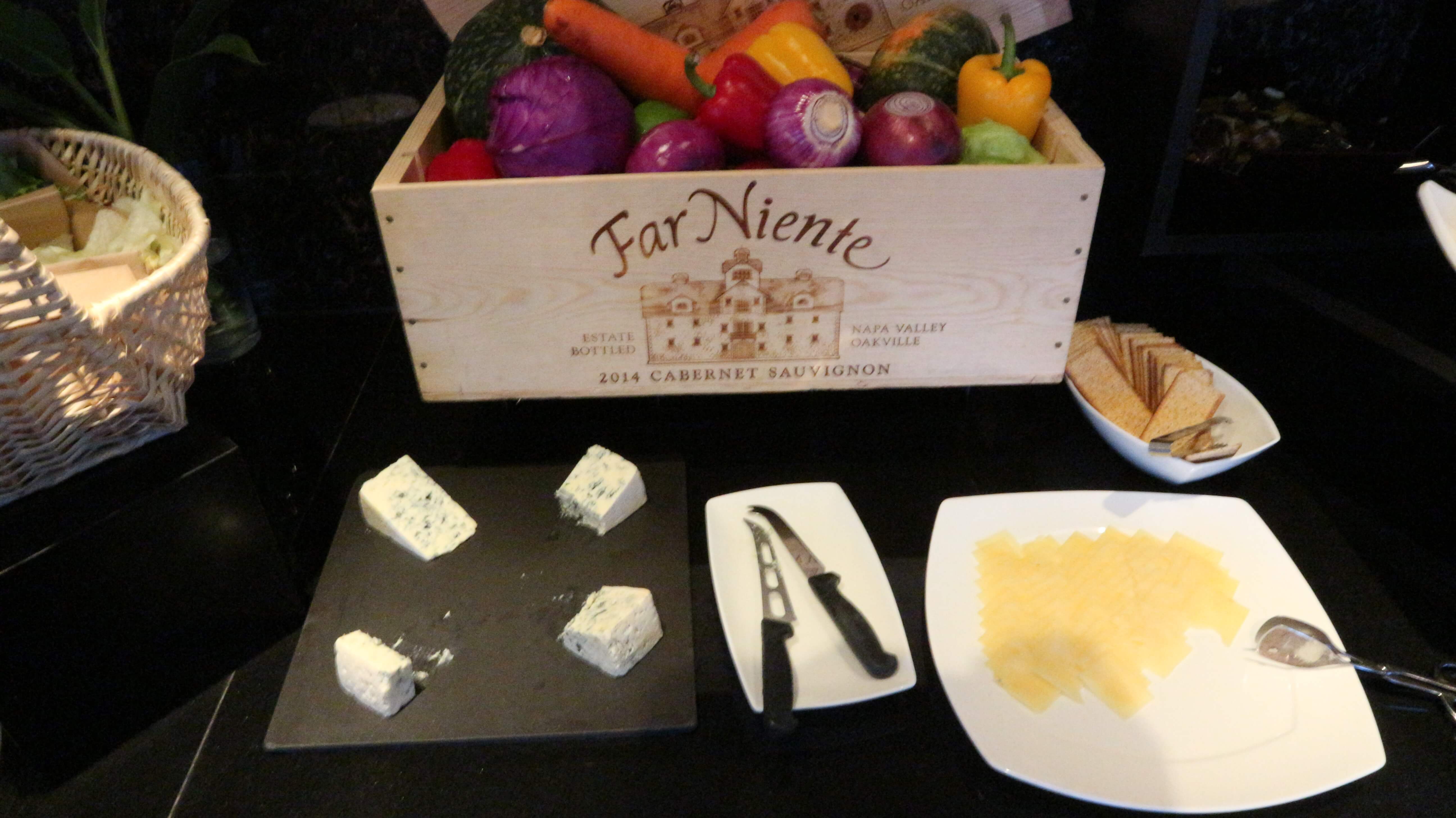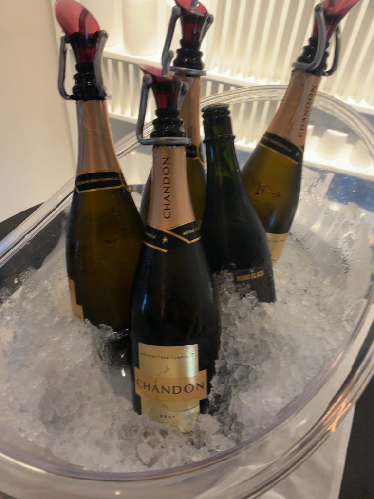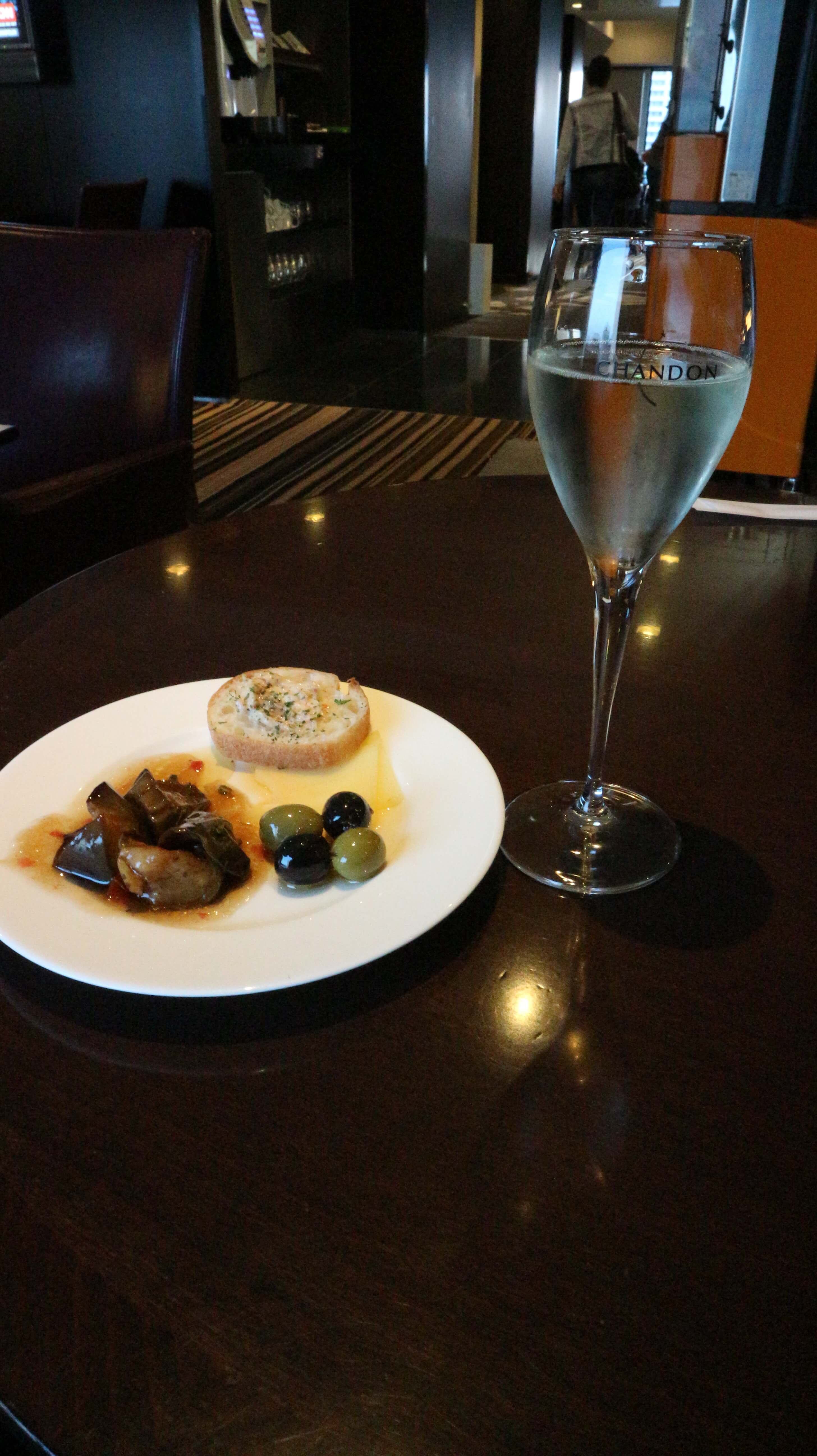 夕食は外で食べる予定があったので前菜代わりに軽くフードを頂き、食前酒代わりにスパークリングワインを頂きました!
