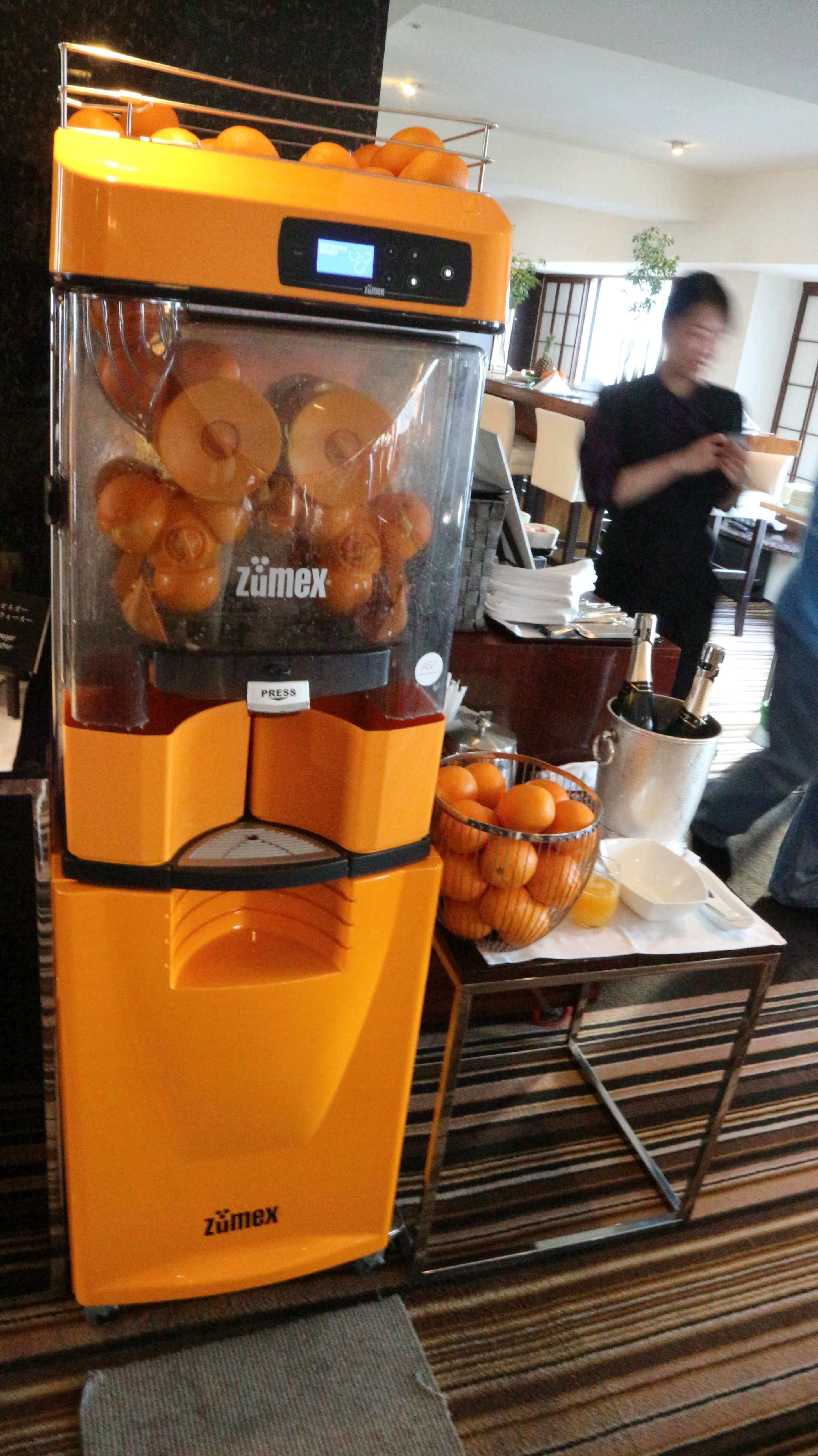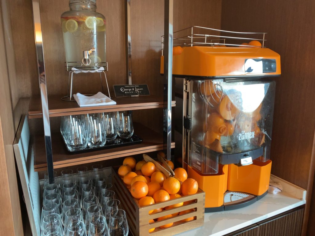 こちらには大きなオレンジジュースのマシーンが置かれています。