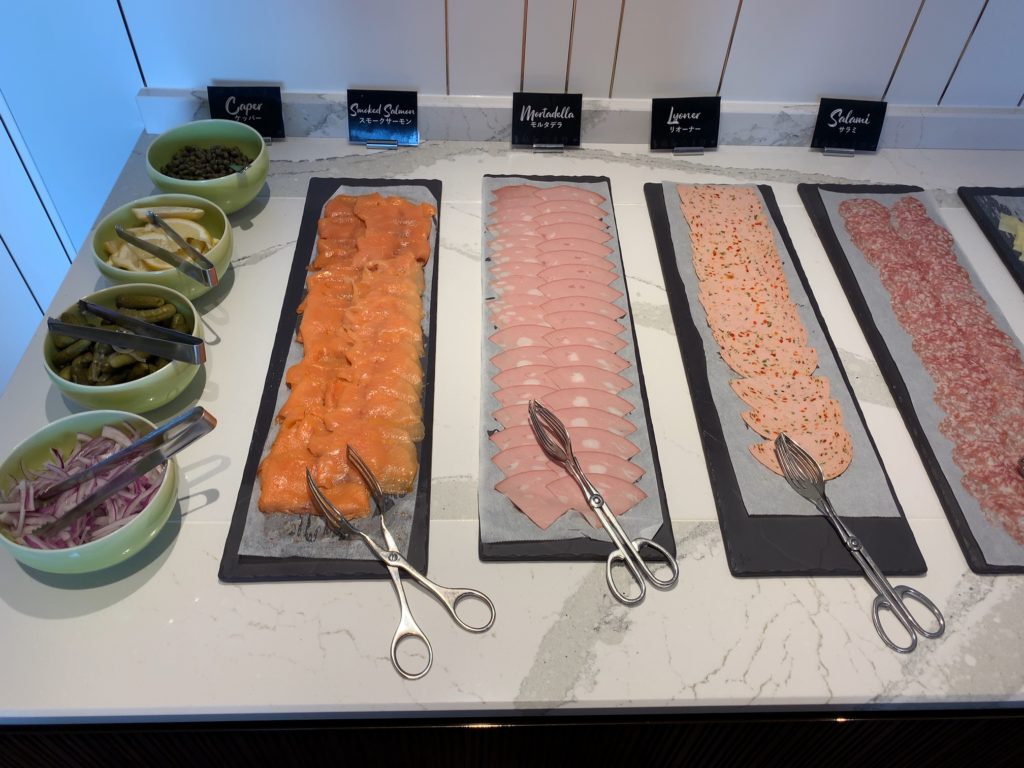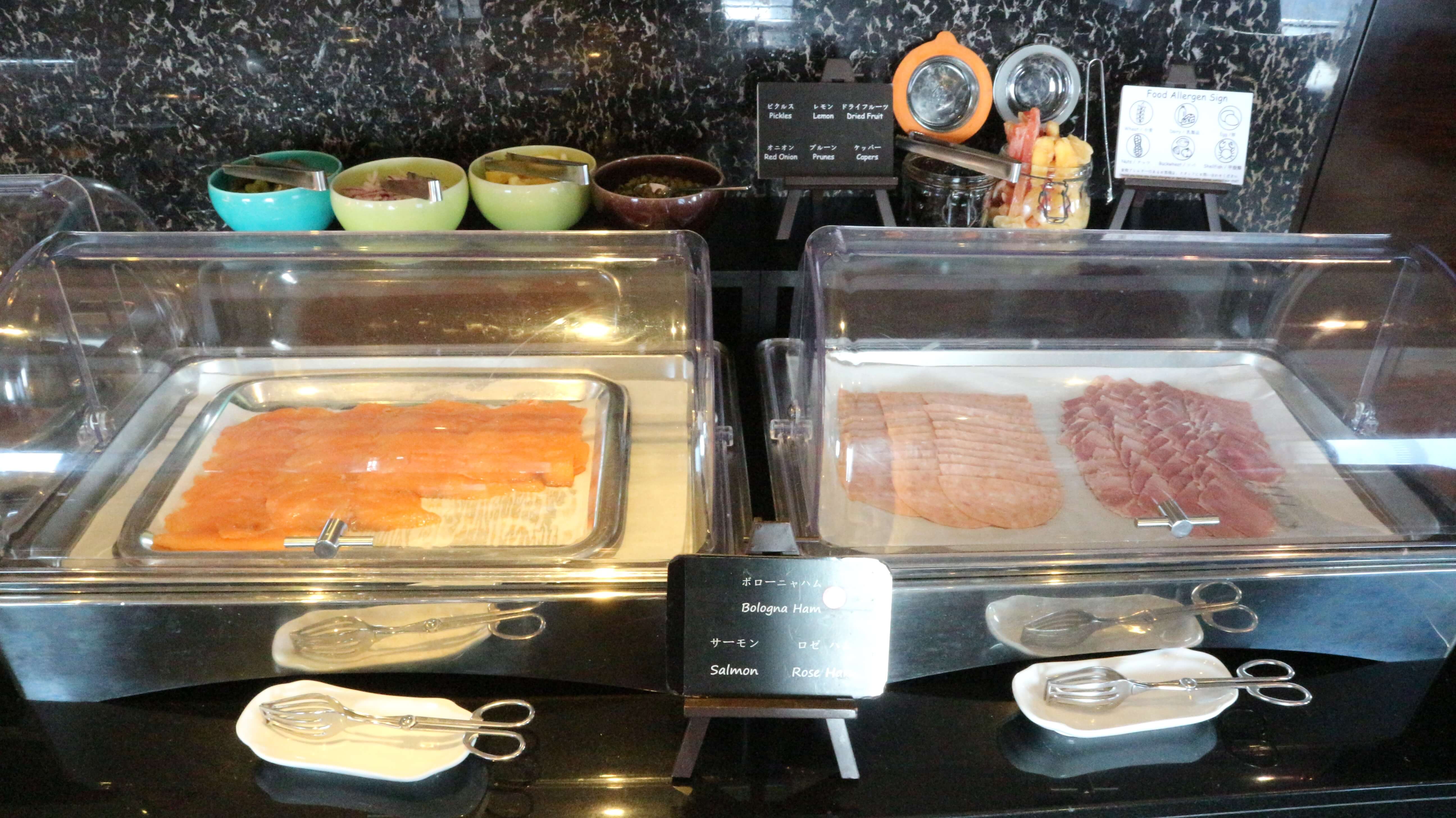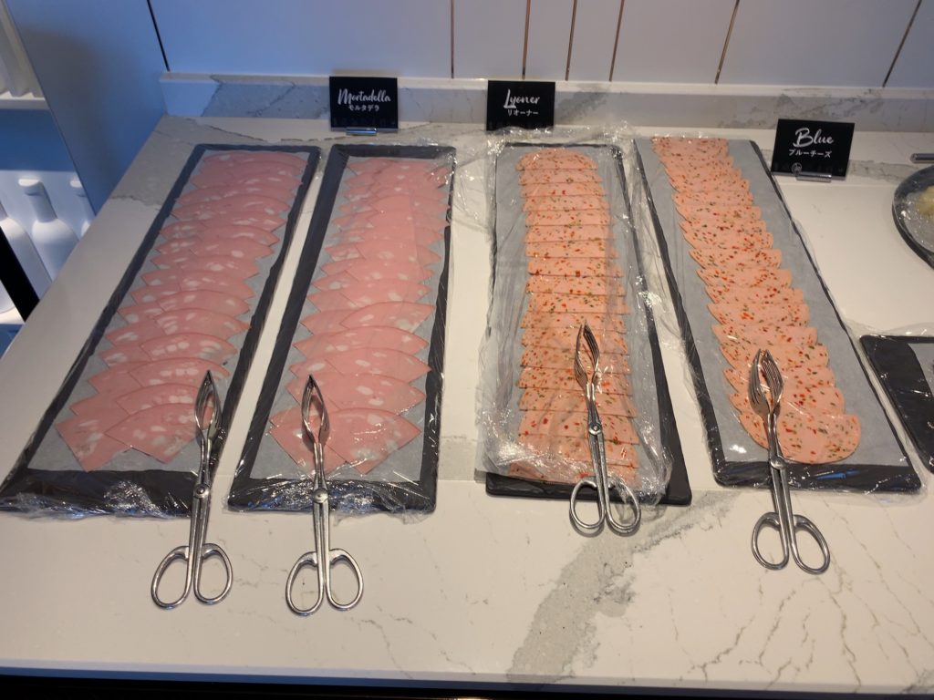 一番手前にはハムやサーモン、ドライフルーツなどが並んでいます